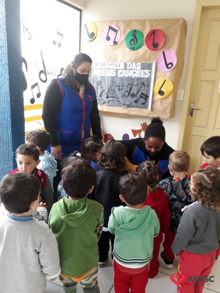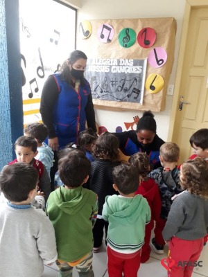 As canções fazem parte do mundo infantil; e nas escolas de educação infantil, atendem vários propósitos que vão desde hábitos ligados a rotina escolar, assim como memorização de conteúdos. Pensando em contagiar a toda comunidade escolar, as colaboradoras do CEI Afasc Zulma Naspolini Manique Barreto estão trabalhando com o projeto macro “A alegria das nossas canções”, permitindo assim que as crianças se apropriem do conhecimento.
