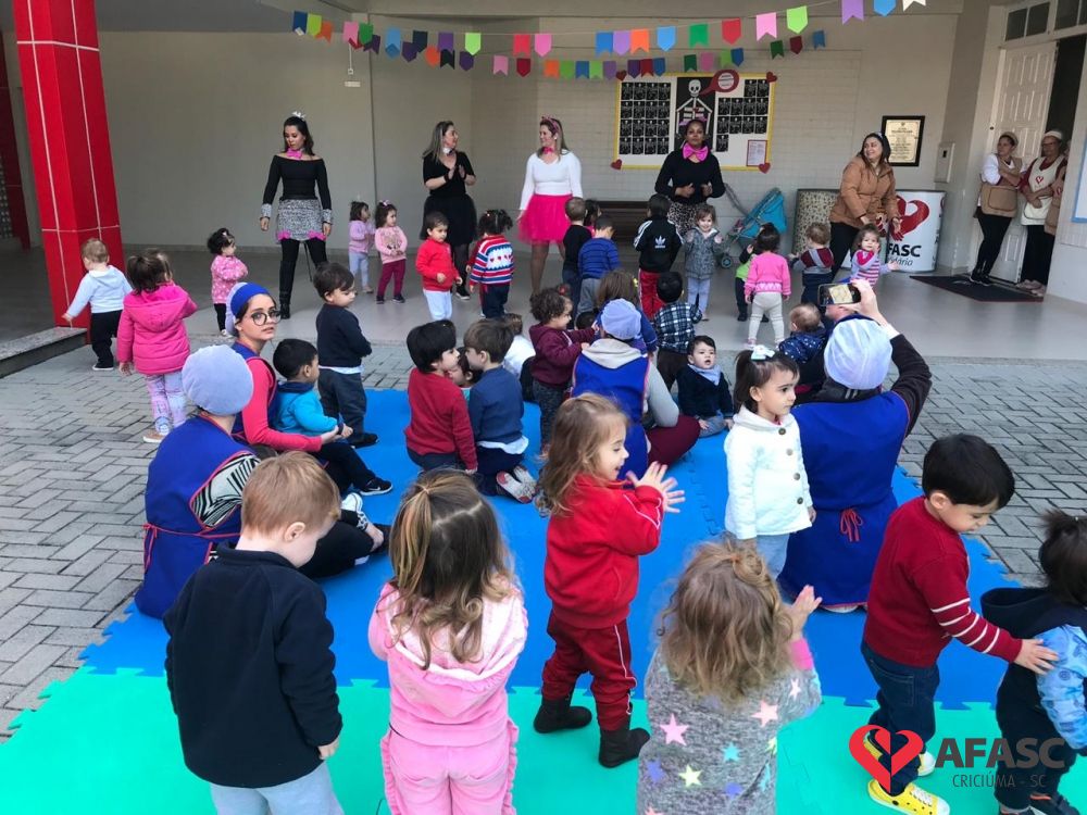 Atividades super divertidas que trouxeram muita aprendizagem para os pequenos. Assim foi o encerramento do Projeto de “Férias de Inverno” dos Centros de Educação Infantil (CEI) da Associação Feminina de Assistência Social de Criciúma (Afasc) nesta sexta-feira (26). Desde o dia 15 de julho, as crianças e educadores realizaram atividades como: brincadeiras circenses, circuito motor, mini pizzaiolo, cinema no CEI, oficinas de brincadeiras, massinha e arte, delícia de vitamina, hora do conto e acampamento no CEI.
