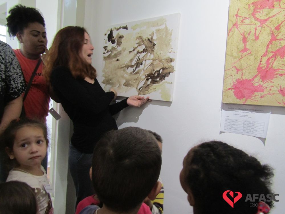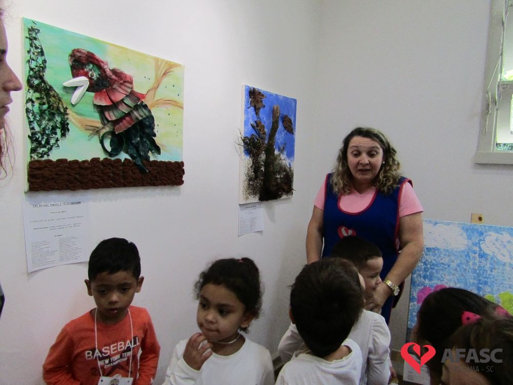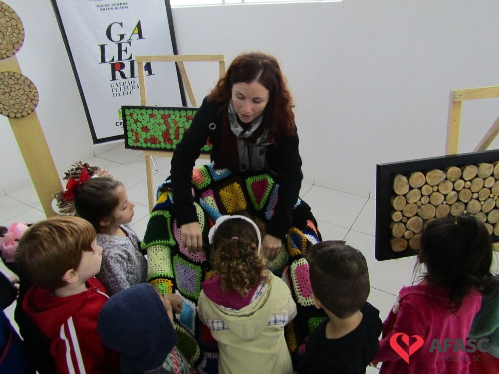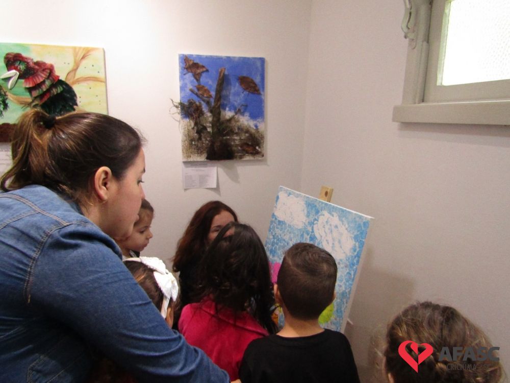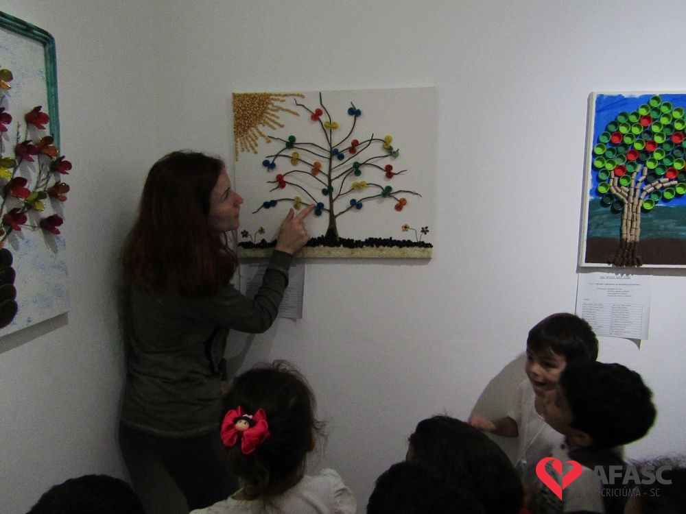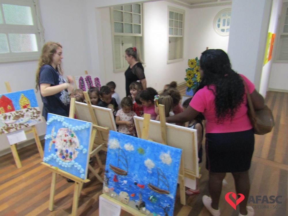 Durante a exposição, as crianças visitaram a galeria e prestigiaram os trabalhos que tiveram como materiais de confecção cascas de ovo, folhas, reciclador, galhos entre outros. Toda a produção contou com a colaboração da profissional da FCC e acadêmica de Teatro da Universidade do Extremo Sul Catarinense (Unesc), Ana Bertolina. As obras remetem a preservação do meio ambiente e são releituras de alguns pintores famosos.