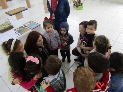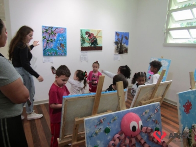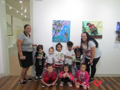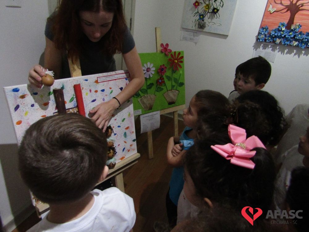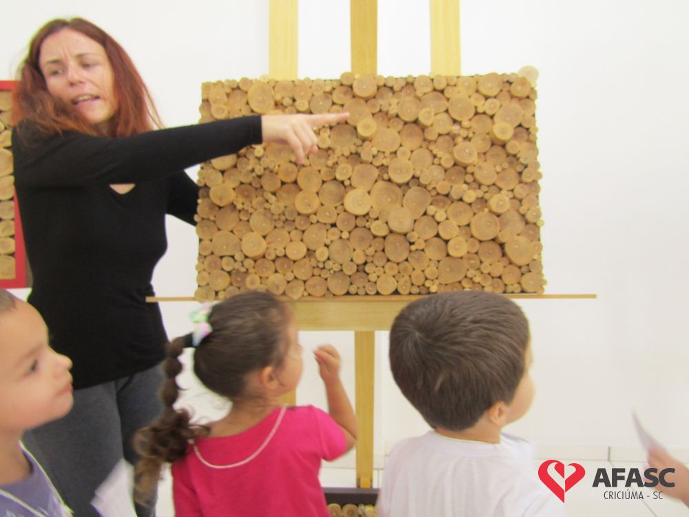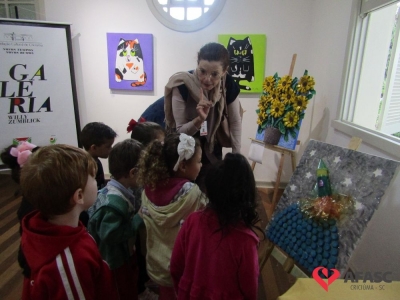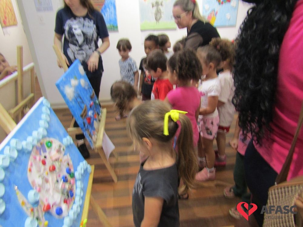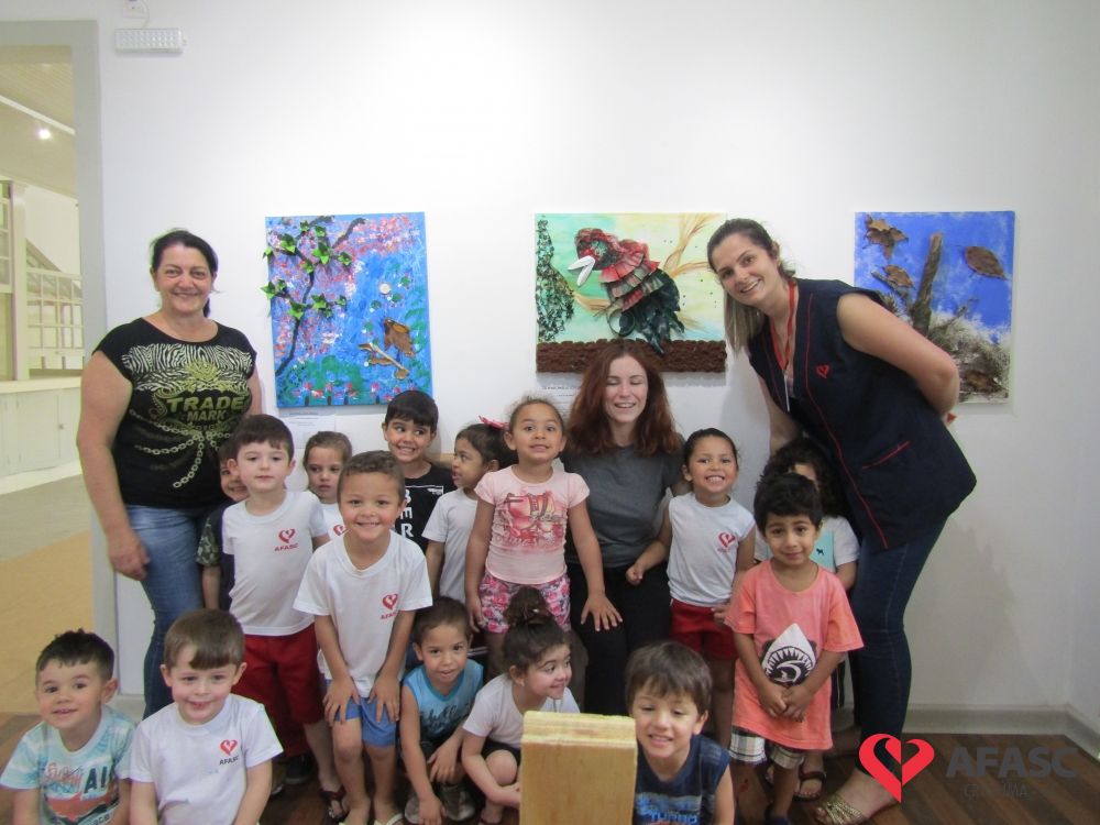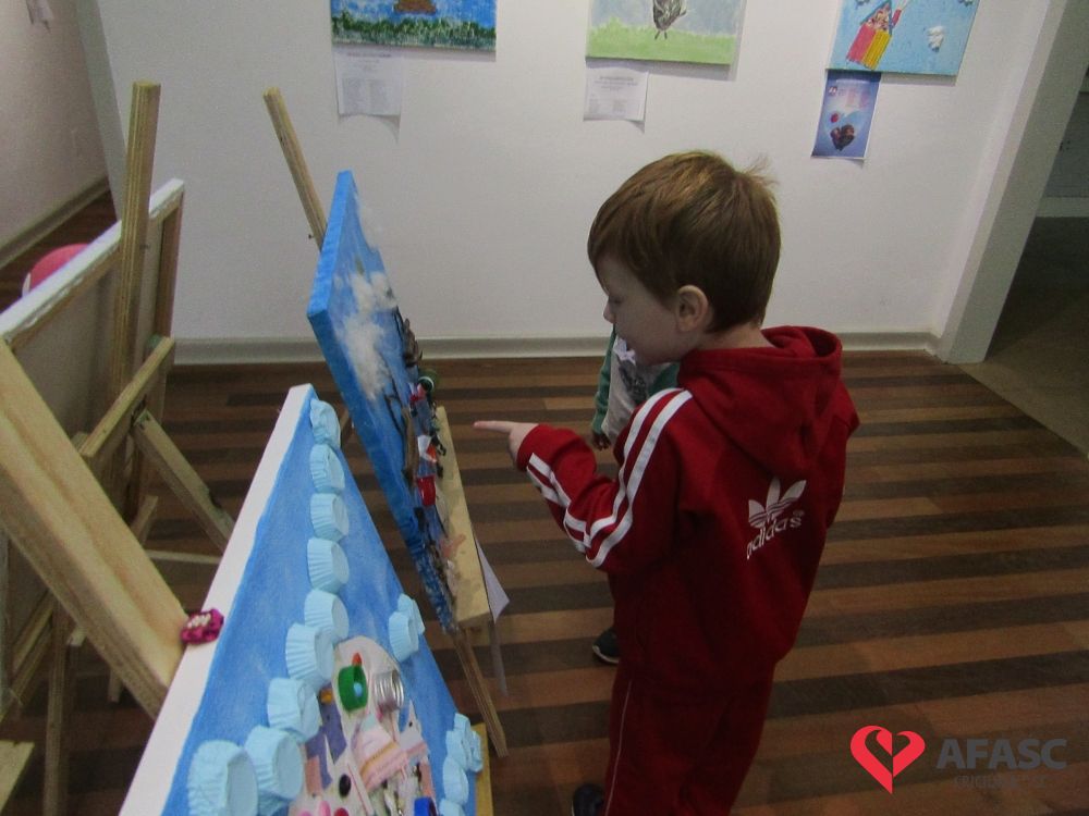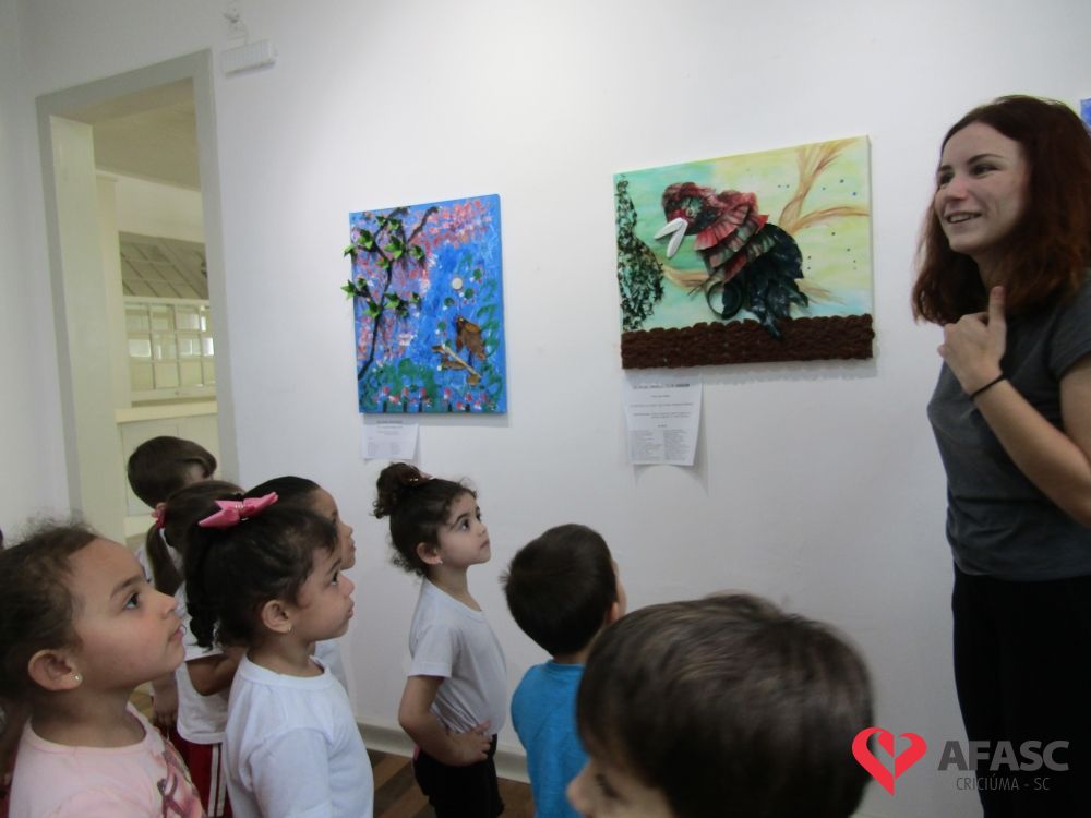 Durante a exposição, as crianças visitaram a galeria e prestigiaram os trabalhos que tiveram como materiais de confecção cascas de ovo, folhas, reciclador, galhos entre outros. Toda a produção contou com a colaboração da profissional da FCC e acadêmica de Teatro da Universidade do Extremo Sul Catarinense (Unesc), Ana Bertolina. As obras remetem a preservação do meio ambiente e são releituras de alguns pintores famosos.