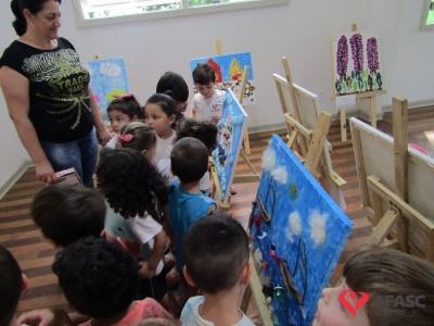 Visando a integração e o incentivo a arte, a Associação Feminina de Assistência Social de Criciúma (Afasc), por meio do Departamento de Educação Infantil (DEI), realizou uma parceria com a Fundação Cultural de Criciúma (FCC), e possibilitou que as crianças dos 32 Centros de Educação Infantil (CEI) da instituição, que frequentam os Grupos IV e V, participassem do Projeto “Pipoca”. Através do projeto, as crianças confeccionaram lindos quadros que estiveram em exposição durante todo o mês de outubro na Galeria de Arte Contemporânea Willy Zumblick.