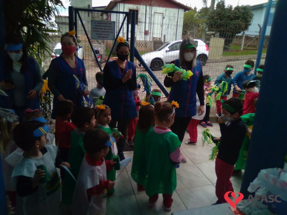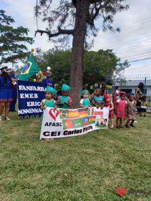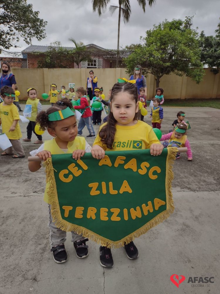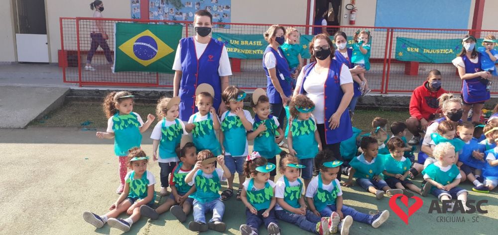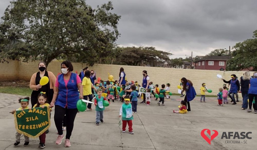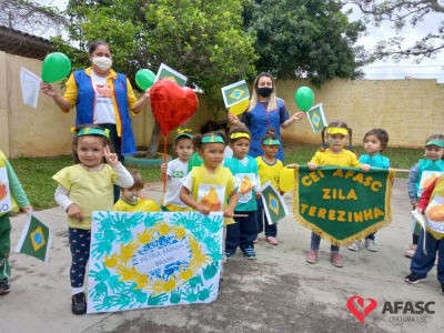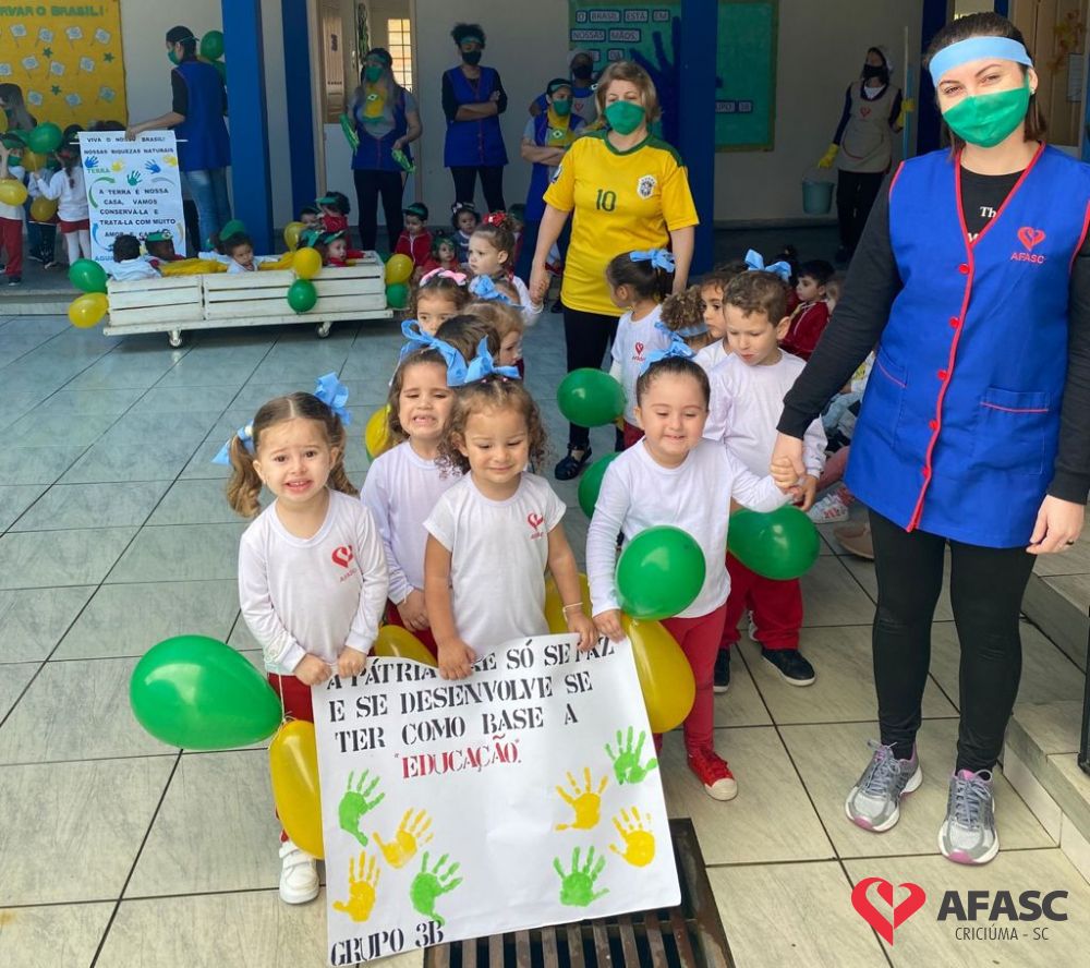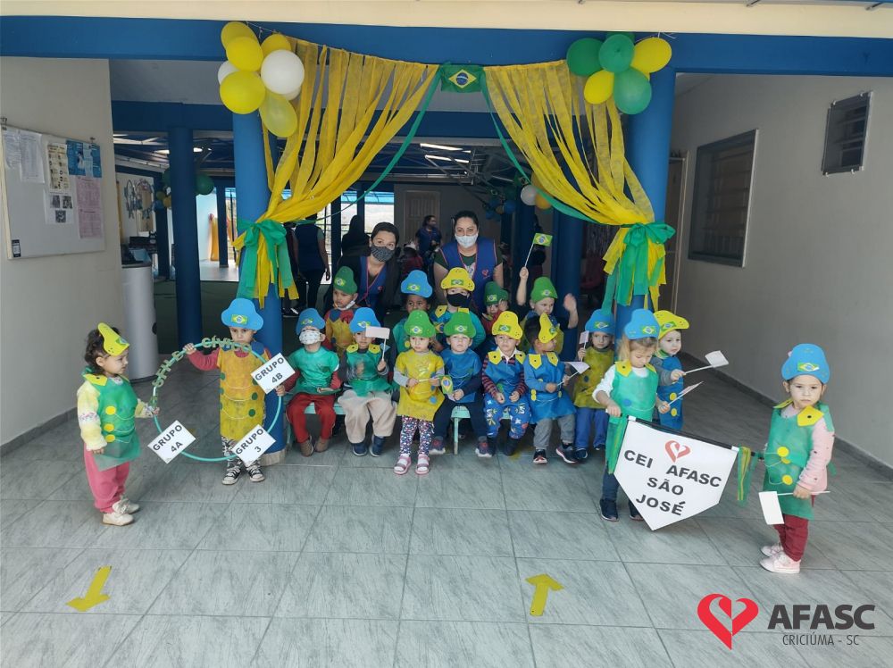 Em alusão ao Dia da Independência do Brasil, celebrado neste dia 7 de setembro, os Centros de Educação Infantil (CEI’s) da Associação Feminina de Assistência Social de Criciúma (Afasc), estão realizando desfiles e atos cívicos. As atividades iniciaram desde o início do mês, mobilizando crianças e famílias, demonstrando assim patriotismo, respeito e amor pelo país. Os atos têm contato com a participação do diretor executivo, Adriano Boaroli e equipe do Departamento de Educação Infantil (DEI).
