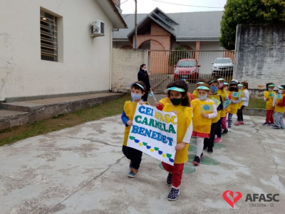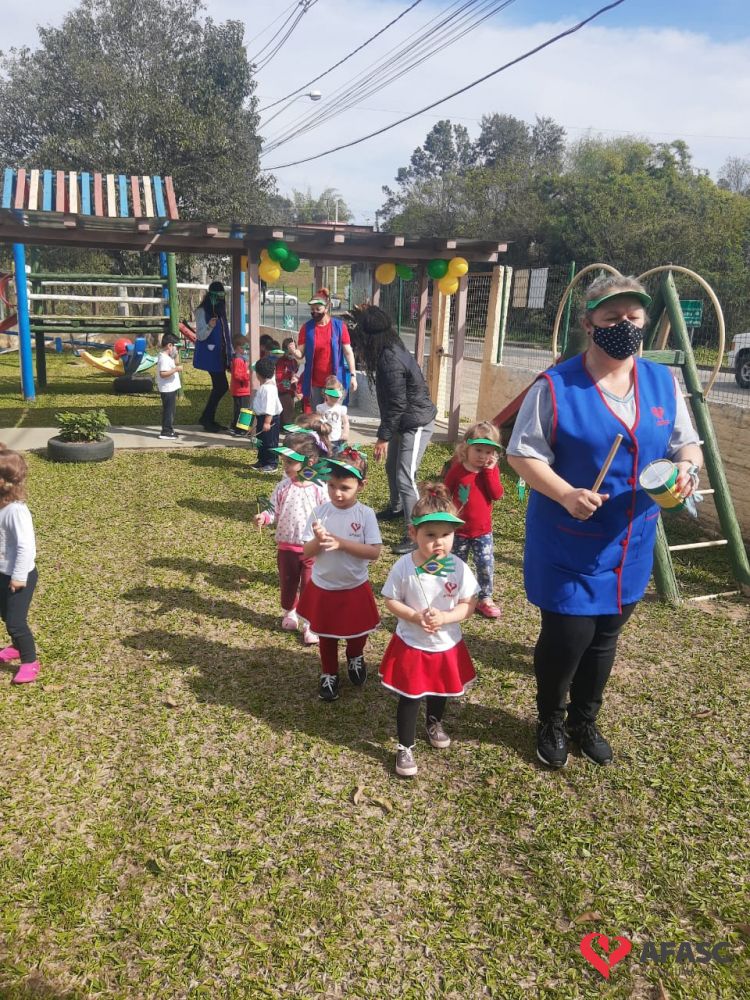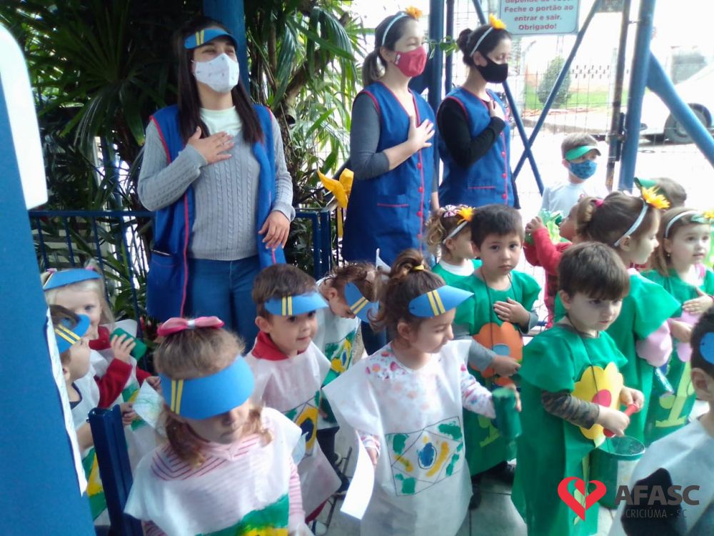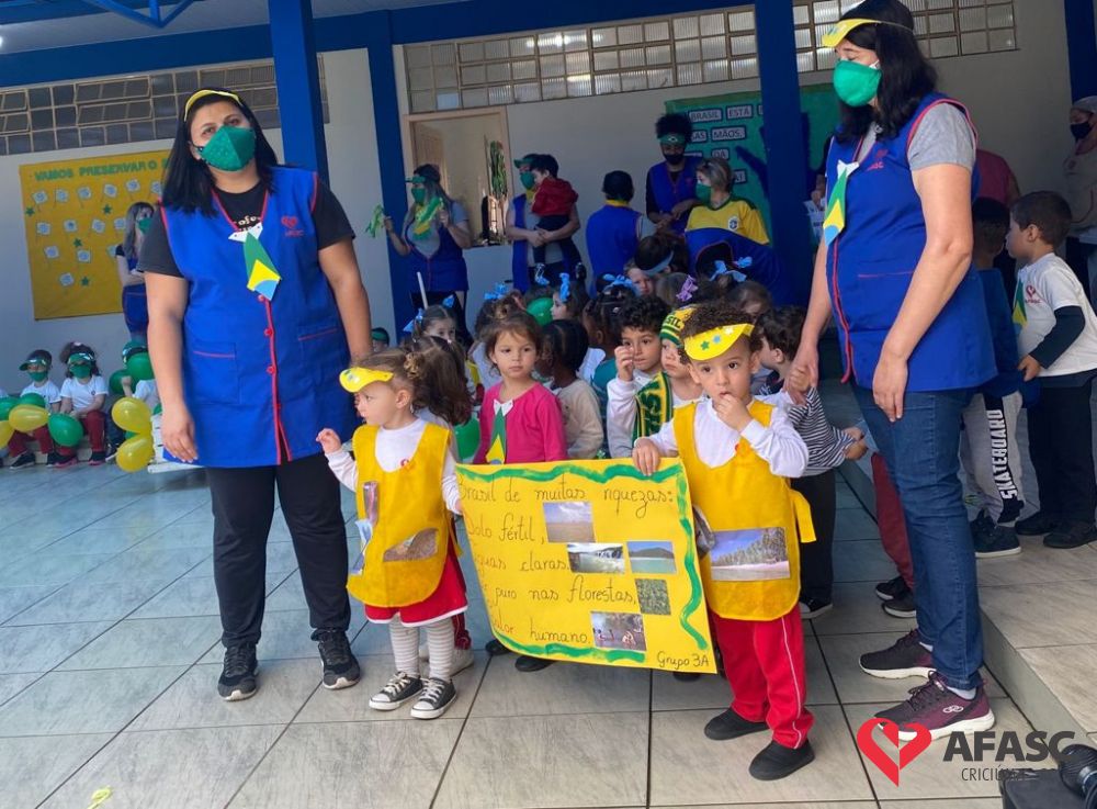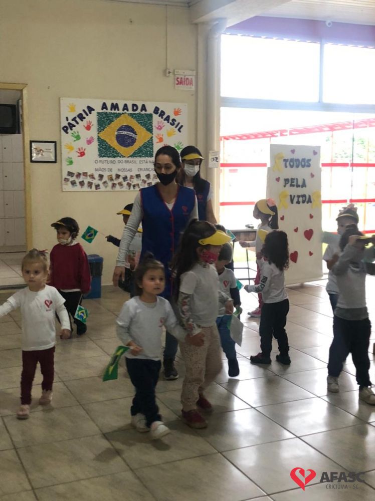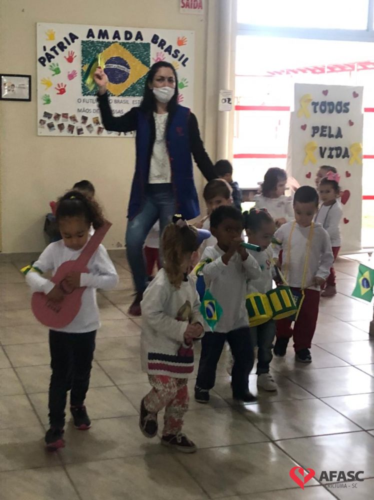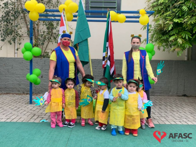 Em alusão ao Dia da Independência do Brasil, celebrado neste dia 7 de setembro, os Centros de Educação Infantil (CEI’s) da Associação Feminina de Assistência Social de Criciúma (Afasc), estão realizando desfiles e atos cívicos. As atividades iniciaram desde o início do mês, mobilizando crianças e famílias, demonstrando assim patriotismo, respeito e amor pelo país. Os atos têm contato com a participação do diretor executivo, Adriano Boaroli e equipe do Departamento de Educação Infantil (DEI).