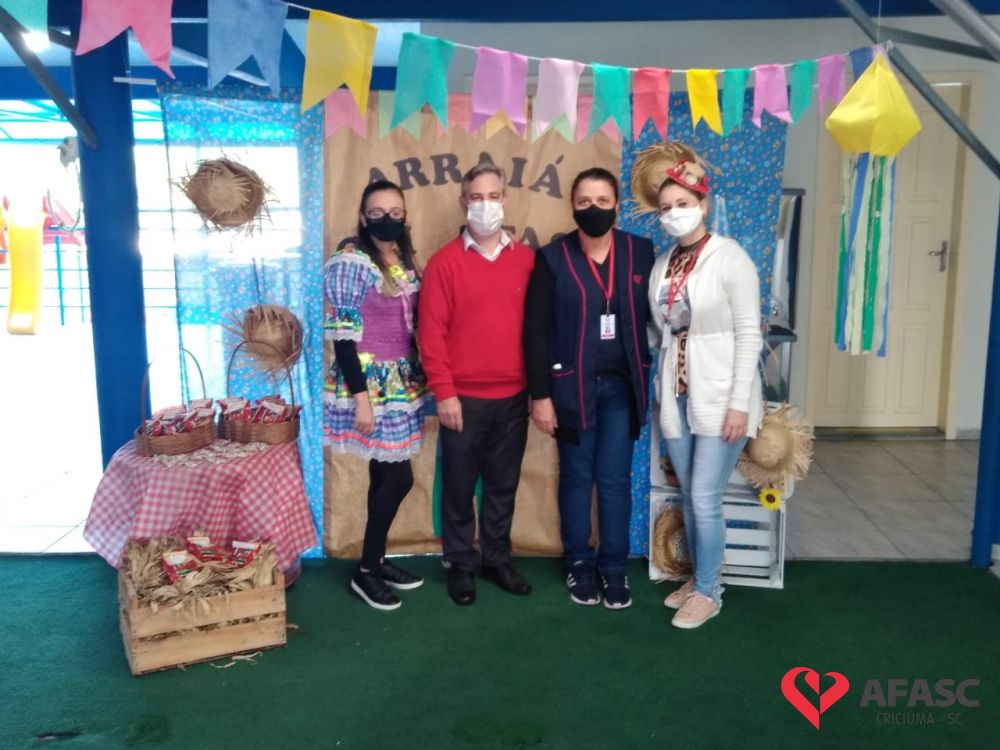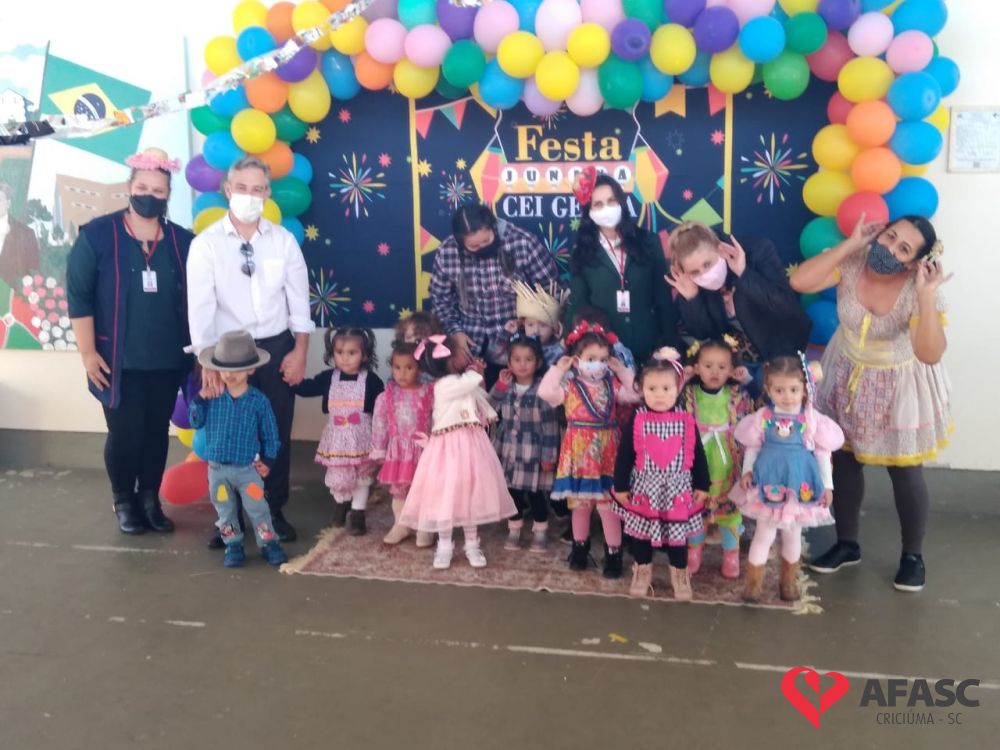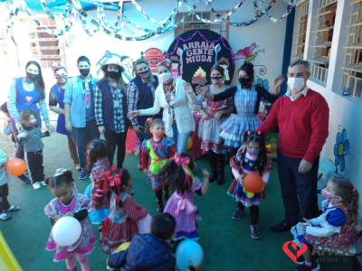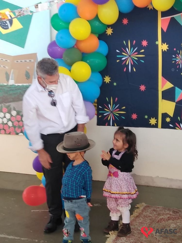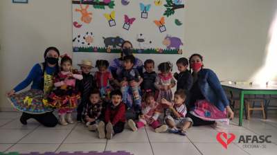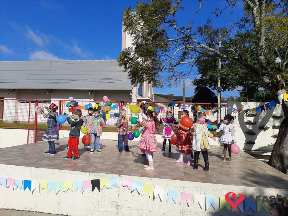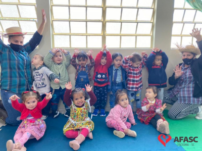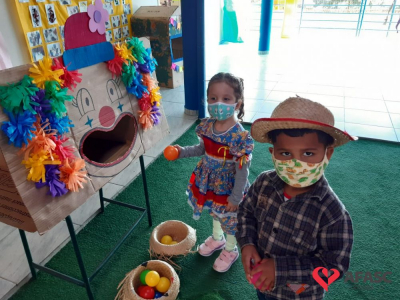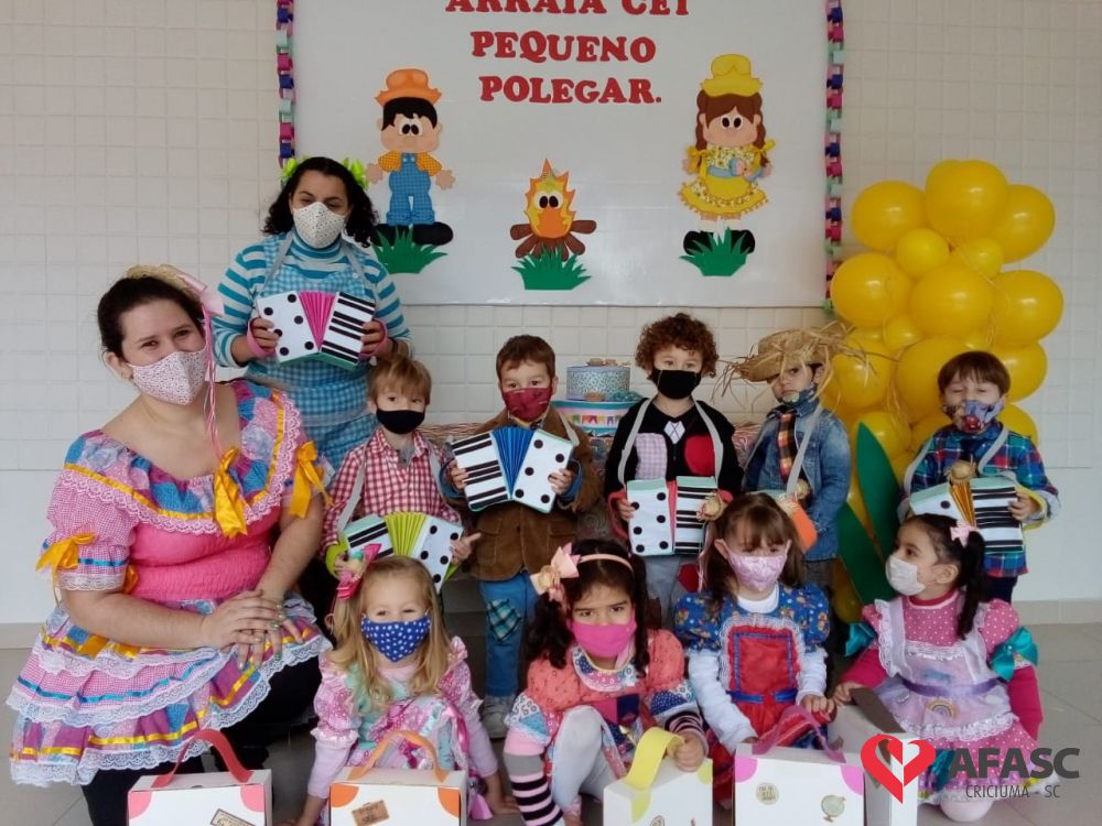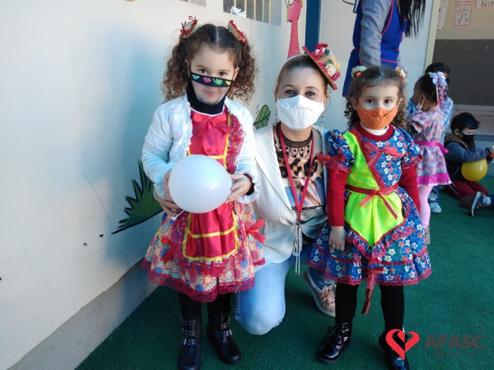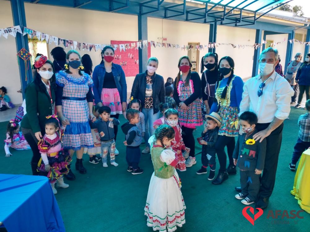 Esse ano, devido a pandemia, os Centros de Educação Infantil (CEI) da Afasc tiveram que inovar para realizar as tradicionais festas juninas. Para celebrar a data, algumas creches organizaram festejos internos, que contou com vestimentas características, saborosas comidas e muitas brincadeiras e danças típicas, que tornaram o ambiente escolar um local enriquecedor de aprendizagens, integração e descontração. As festividades nas creches foram acompanhadas pela coordenadora do Departamento de Educação Infantil (DEI) da Afasc, Andreza Dagostim, pelo diretor executivo, Adriano Boaroli, e outras autoridades do município.