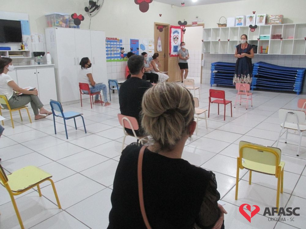 As atividades nos Centros de Educação Infantil (CEI) da Afasc iniciaram no dia 8 de fevereiro. Desde então, as gestoras das unidades escolares se organizaram para realizar a primeira reunião de pais de 2021, que ocorreu durante a última semana do mês de fevereiro, seguindo os regramentos da Vigilância Sanitária, onde foram acolhidos com muito carinho e atenção, pelas equipes das 35 creches.