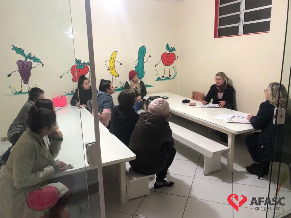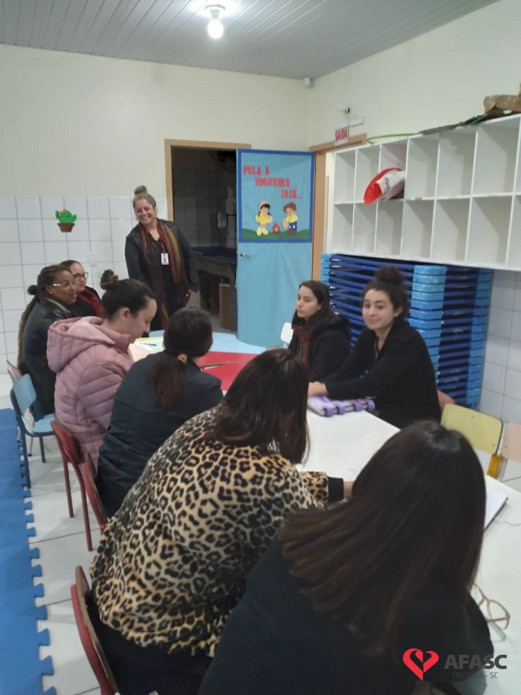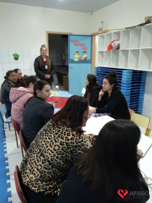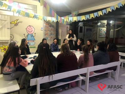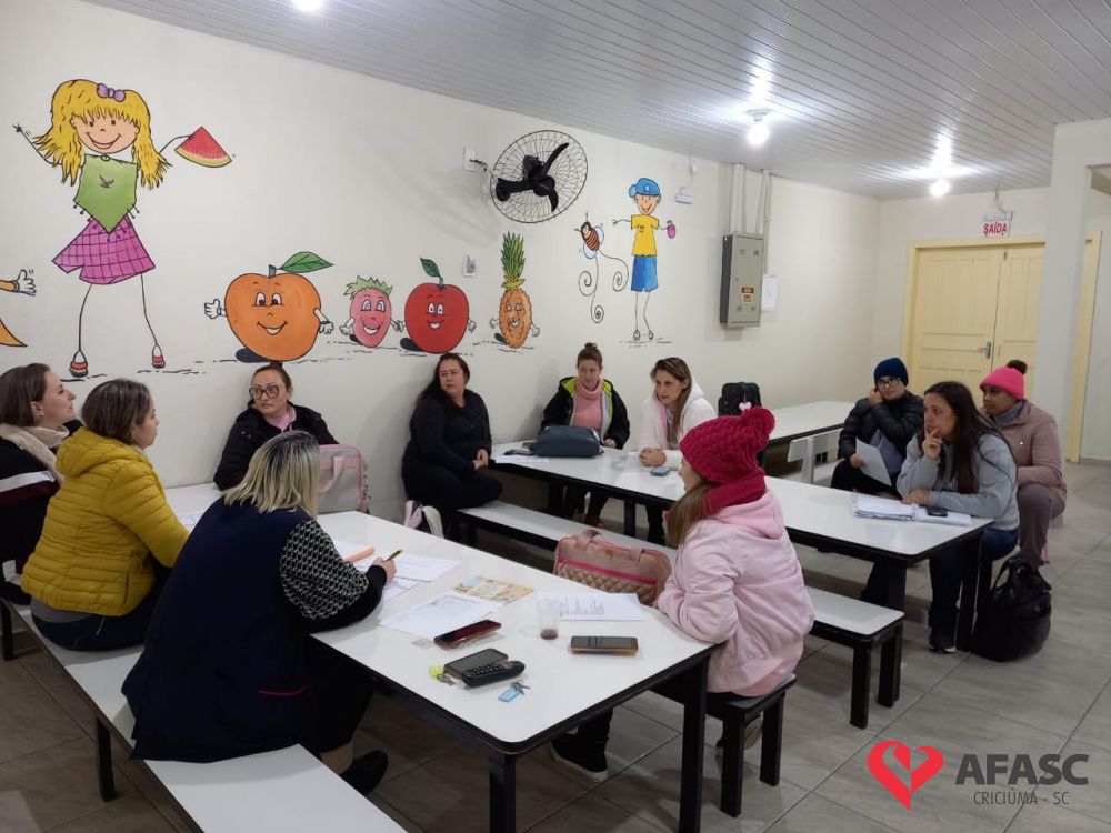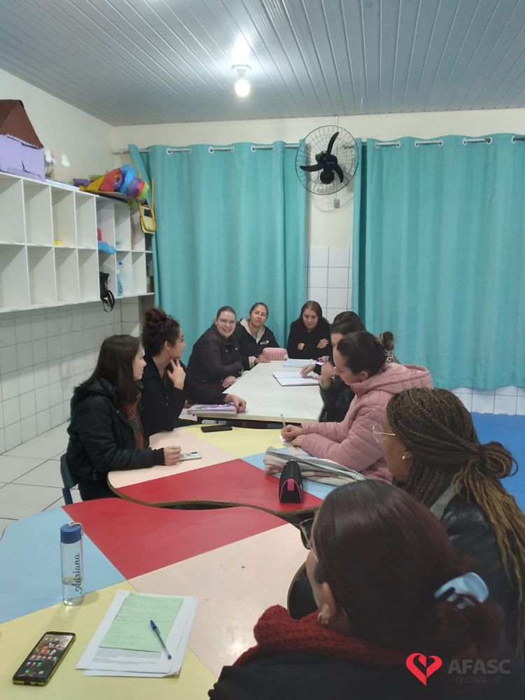 Com o intuito de sanar dúvidas, organizar projetos para o segundo semestre e orientar quanto as atividades desenvolvidas nas creches da Associação Feminina de Assistência Social de Criciúma (Afasc), as diretoras dos 40 Centros de Educação Infantil (CEI) reuniram professoras, estagiárias e equipes de apoio em reuniões pedagógicas. Os encontros acontecerem nesta segunda (13) e terça (14) nos CEIs.
