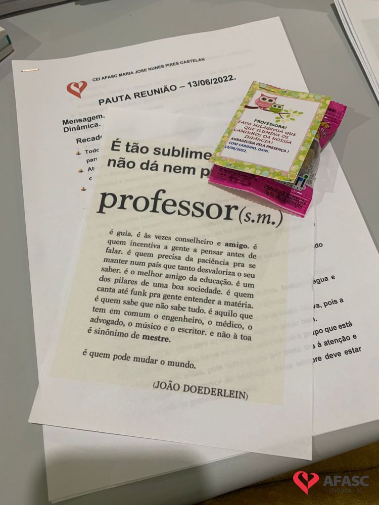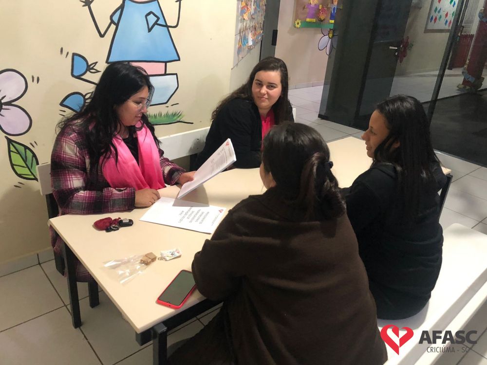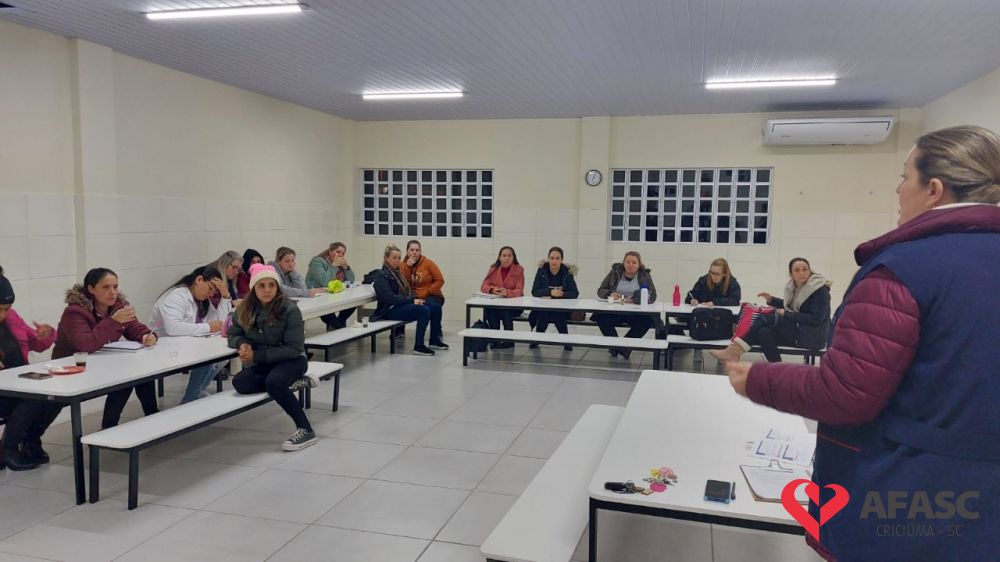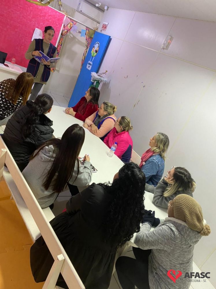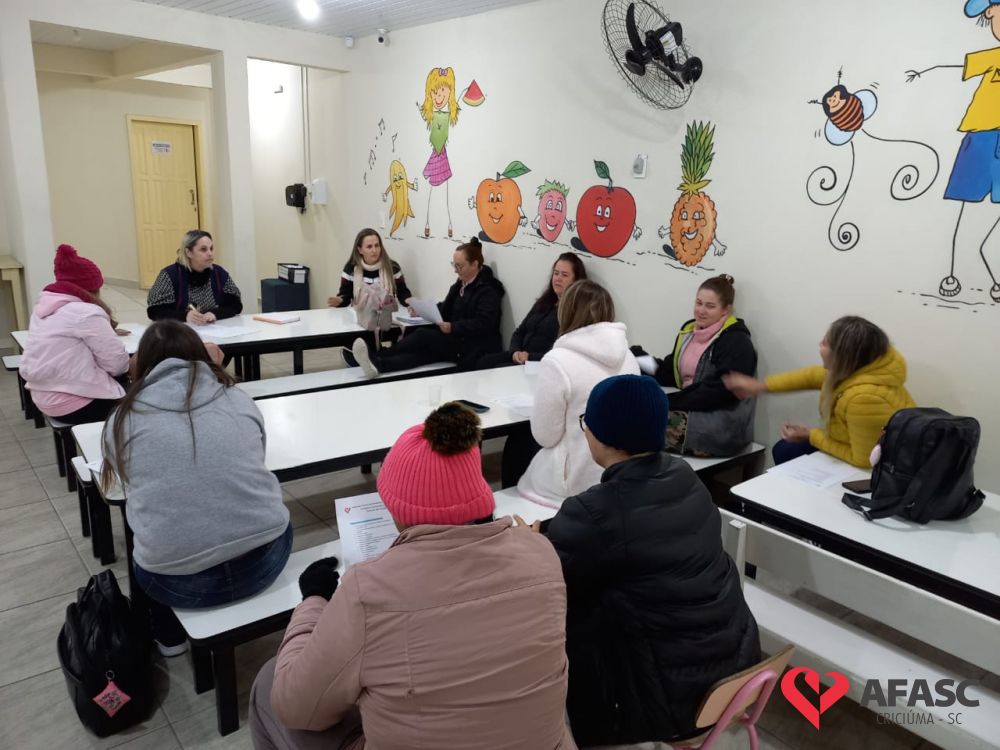 Com o intuito de sanar dúvidas, organizar projetos para o segundo semestre e orientar quanto as atividades desenvolvidas nas creches da Associação Feminina de Assistência Social de Criciúma (Afasc), as diretoras dos 40 Centros de Educação Infantil (CEI) reuniram professoras, estagiárias e equipes de apoio em reuniões pedagógicas. Os encontros acontecerem nesta segunda (13) e terça (14) nos CEIs.