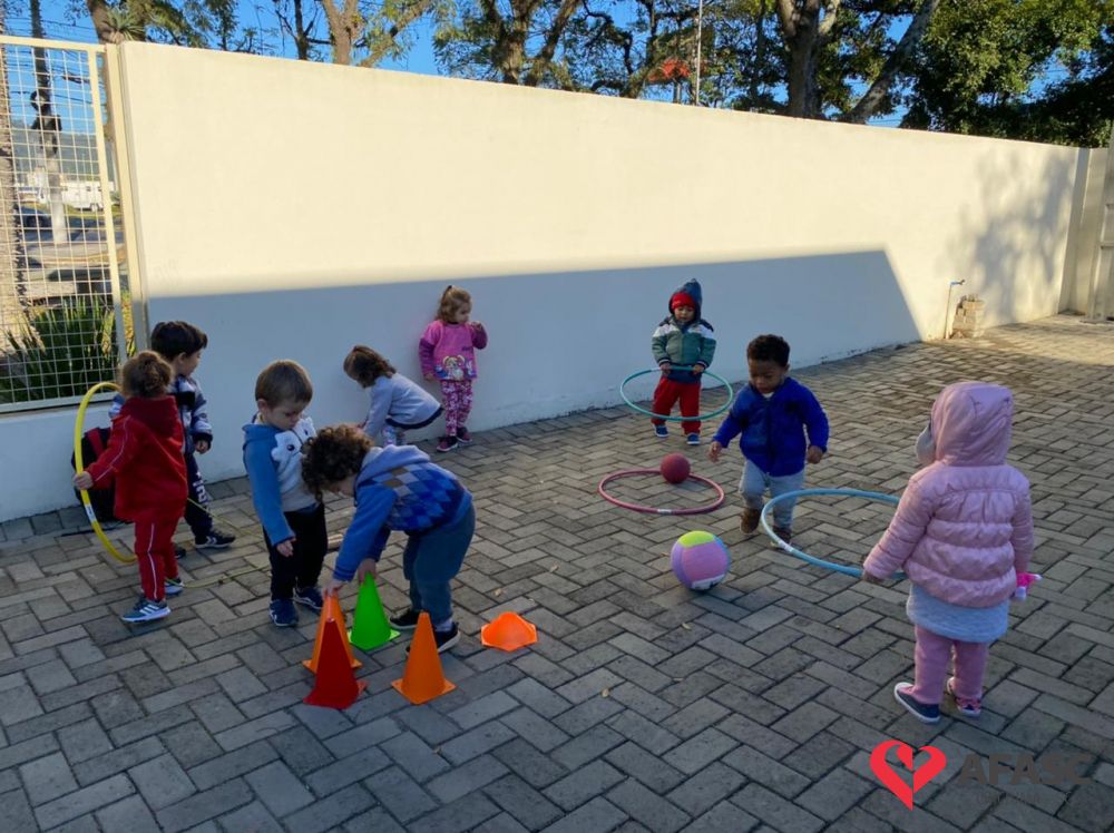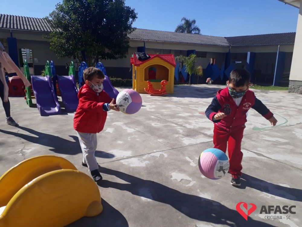 As aulas de educação física ganharam um brilho a mais nos Centros de Educação Infantil (CEI) da Afasc. Asa creches receberam novos materiais esportivos e de recreação. A entrega ocorreu nas últimas semanas do mês de maio e estão incrementando as aulas de educação física e as atividades das salas de aula realizadas nas creches. Dentre os materiais adquiridos estão bolas de vôlei, bolas de borracha, bambolês, cones, jogo de golfe, bolas de tênis de campo e cordas. As entregas contaram com a participação da presidente de honra, Adriana Salvaro, da presidente do Conselho Administrativo da Afasc, Robinalva Ferreira, do diretor executivo, Adriano Boaroli e da coordenadora do Departamento de Educação Infantil (DEI) da associação, Andreza Dagostim.