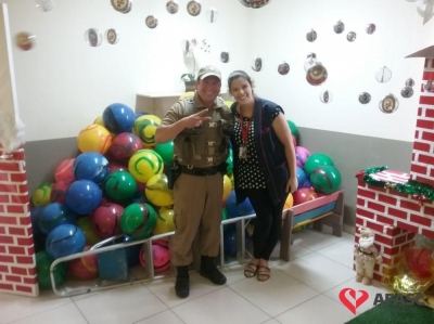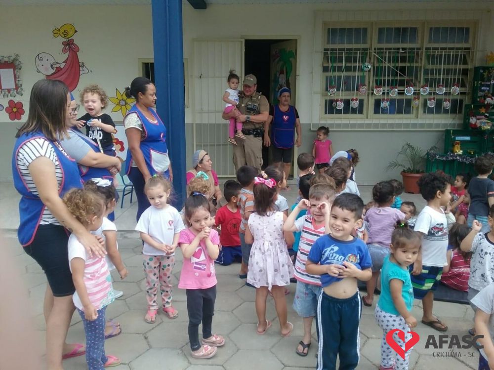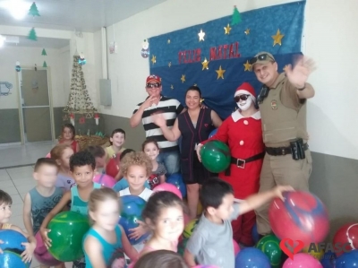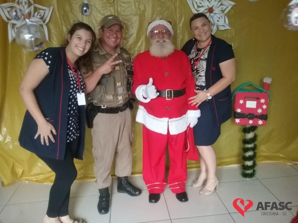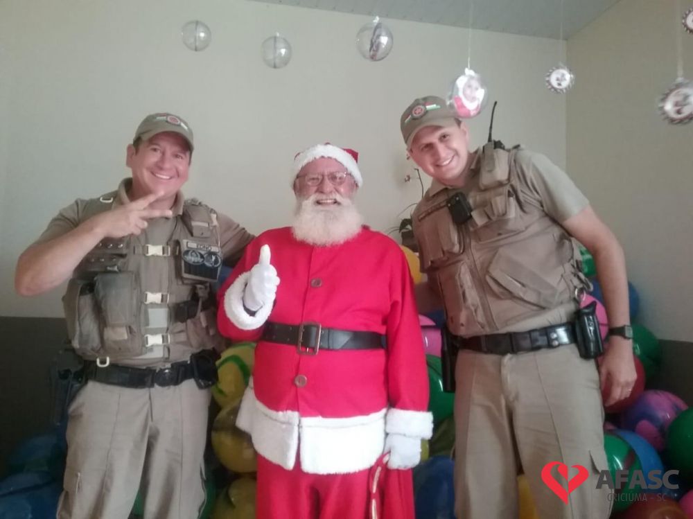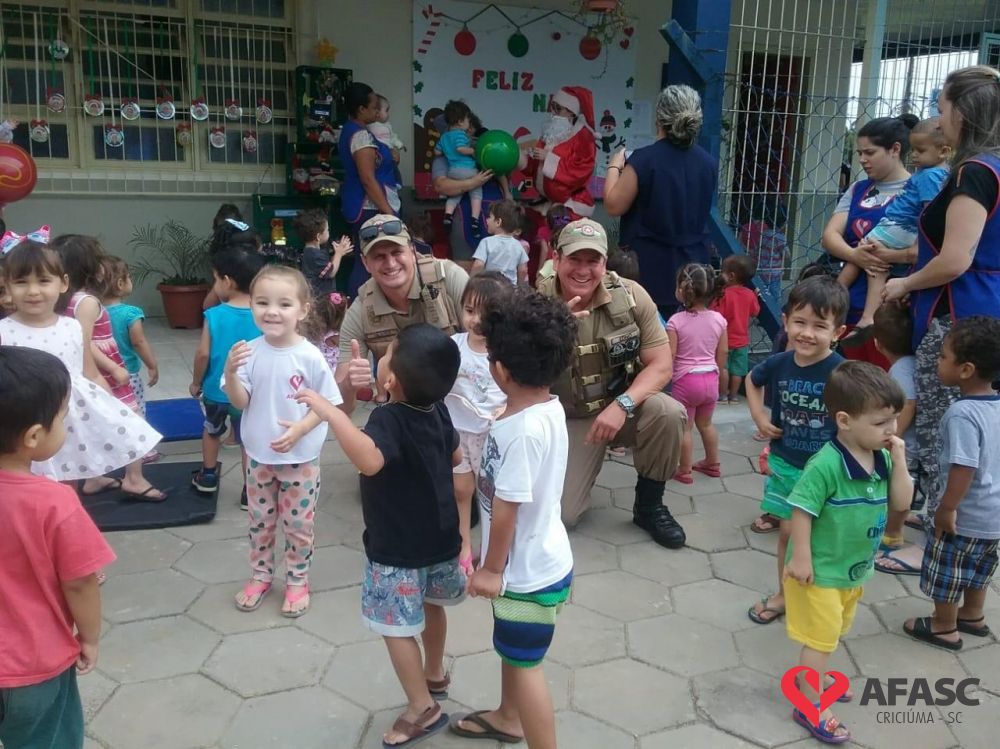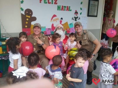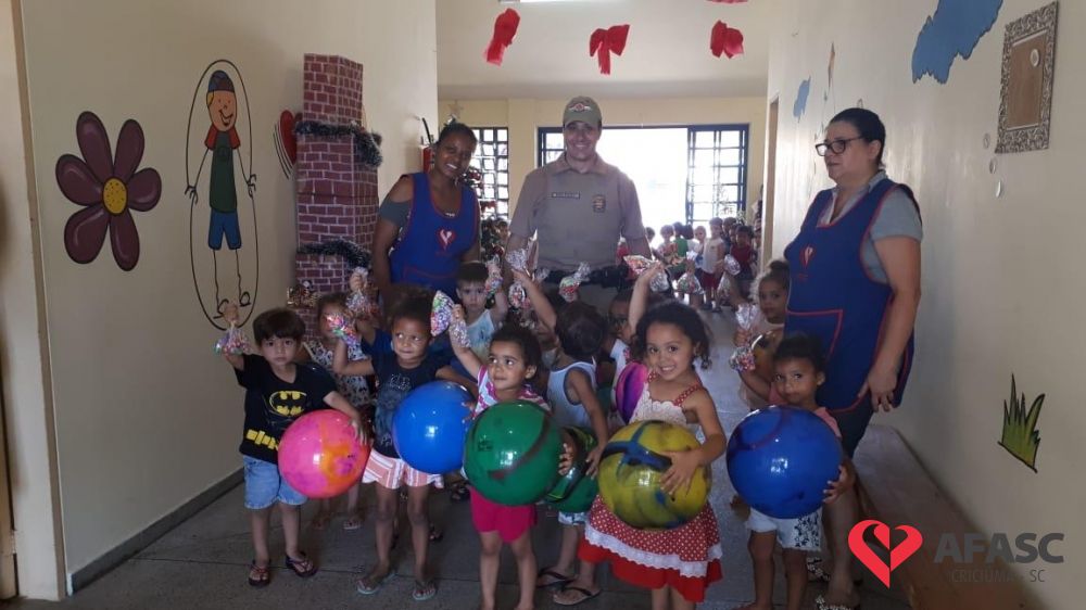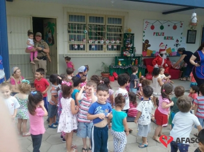 O Natal para crianças de sete Centros de Educação Infantil (CEI) da Associação Feminina de Assistência Social de Criciúma (Afasc) ganhou um gostinho especial. Tudo porque agentes do 9º Batalhão de Polícia Militar de Criciúma, através do sargento Edno Carmélio e o proprietário da Session, Cleber Lima, por meio de parcerias, angariam presentes para transformar e alegrar o natal dos pequenos que frequentam as unidades educacionais.
