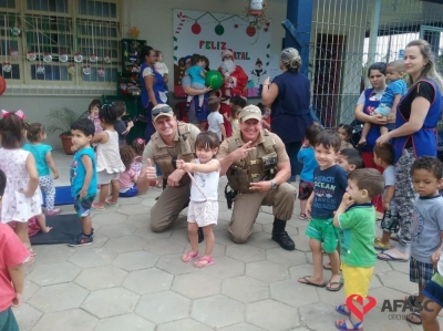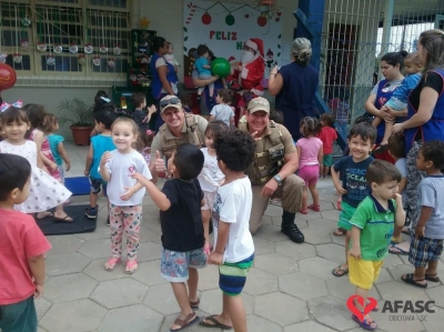 De acordo com a coordenadora do Departamento de Educação Infantil (DEI) da Afasc, Andreza Dagostim, para as crianças, essa ação realizada pela PM é mais que especial. “Essa integração entre a Polícia Militar e a Afasc não é de hoje. Eles vêm sempre nos acompanhando em diversas ações, o que tem trazido um saldo positivo para o trabalho que viemos realizando junto as comunidades. Essa ação de Natal com nossas crianças mostra o quanto estão engajados na luta por uma educação de qualidade, desde os primeiros anos de vida. Nossa entidade é muito grata por toda a colaboração conosco”, comenta.