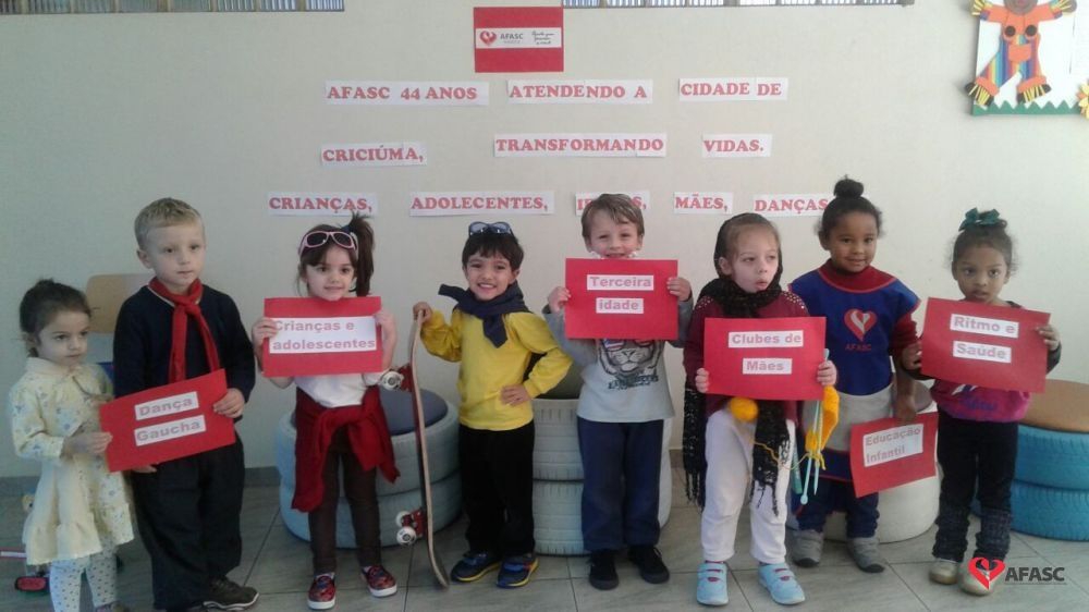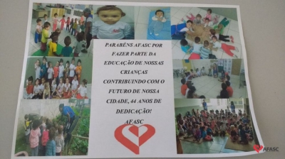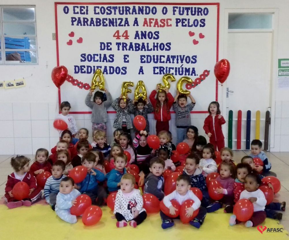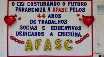 A Associação Feminina de Assistência Social de Criciúma (Afasc) foi fundada no dia 5 de junho de 1973, pela então primeira-dama, Zulma Naspolini Manique Barreto, com o objetivo de prestar serviços de assistência social à população. Com o passar dos anos, as atividades oferecidas se diversificaram e, hoje, atendem a mais de 15 mil pessoas e suas famílias, por mês. Um dos principais serviços é a Educação Infantil, que conta com 31 unidades. E para marcar o aniversário da entidade, que completa 44 anos nesta segunda-feira (5), os alunos e professores dos Centros de Educação Infantil (CEIs) desenvolveram, durante toda a semana passada, uma série de homenagens.