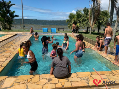 Crianças e adolescentes atendidos pelo Serviço de Convivência e Fortalecimento de Vínculos (SCFV) do CRAS Renascer tiveram um dia de diversão nesta quarta-feira (1º). Os participantes do serviço, por intermédio da orientadora social, Priscilla Licastro, conheceram o Campestre Park, e se divertiram na piscina e espaços lazer.