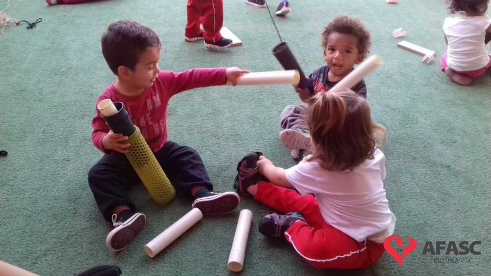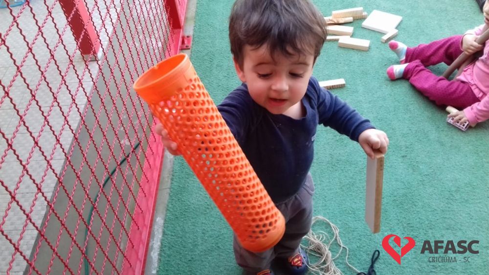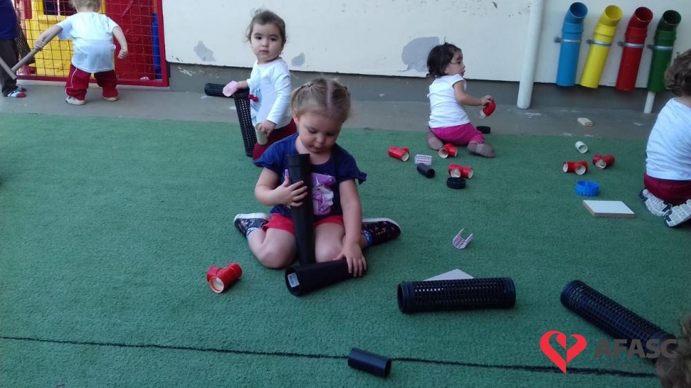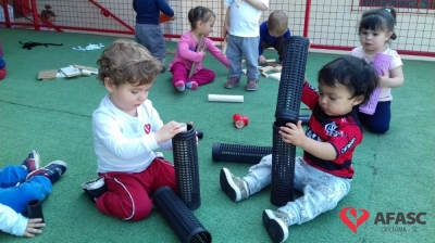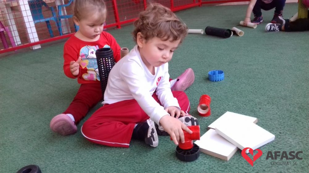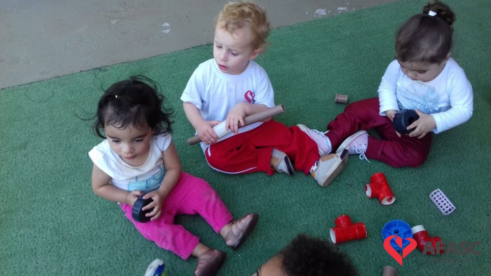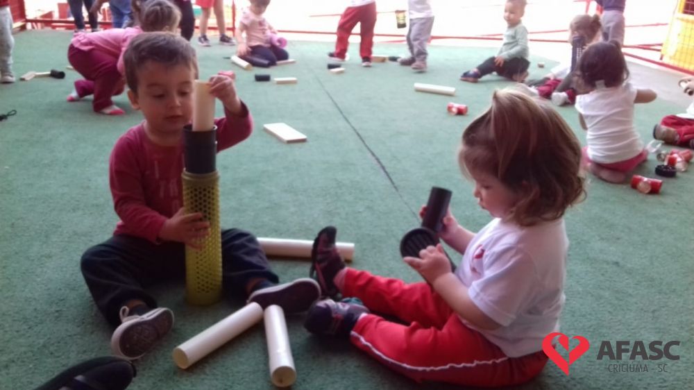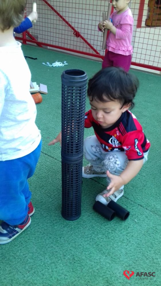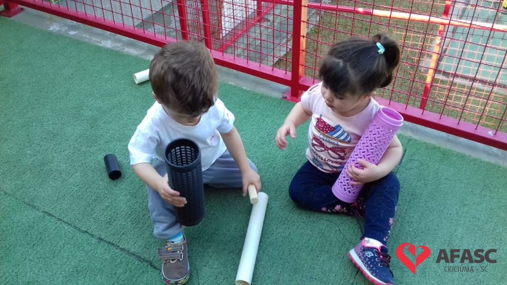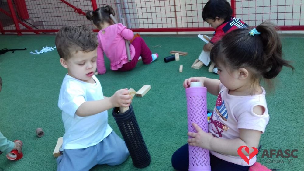 A preservação do meio ambiente é muito importante, e deve ser ensinada desde os primeiros anos de vida das crianças, afinal, os recursos naturais precisam estar disponíveis para a sobrevivência das pessoas. Pensando em dar espaço para que as crianças utilizem a criatividade e a imaginação, as professoras do Grupo II A do Centro de Educação Infantil (CEI) da Associação Feminina de Assistência Social de Criciúma (Afasc) Gerda Becker Machado, Fernanda Correa e Rita Maccarini, preparam um espaço com canos de PVC, cones, pedaços de madeira, dentre outros materiais, para que as crianças os transformassem em brinquedos e brincadeiras.