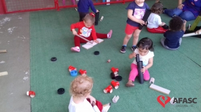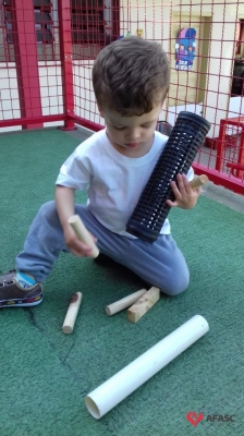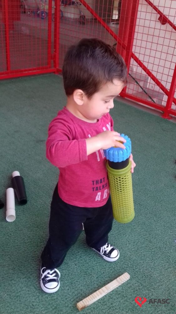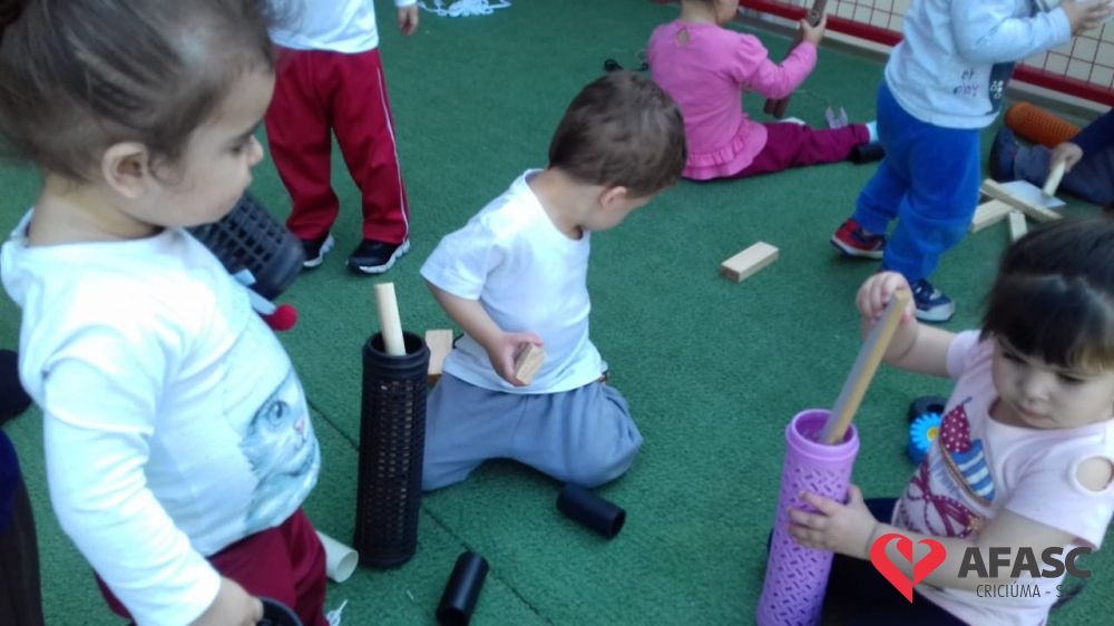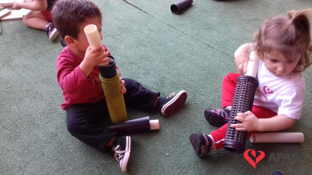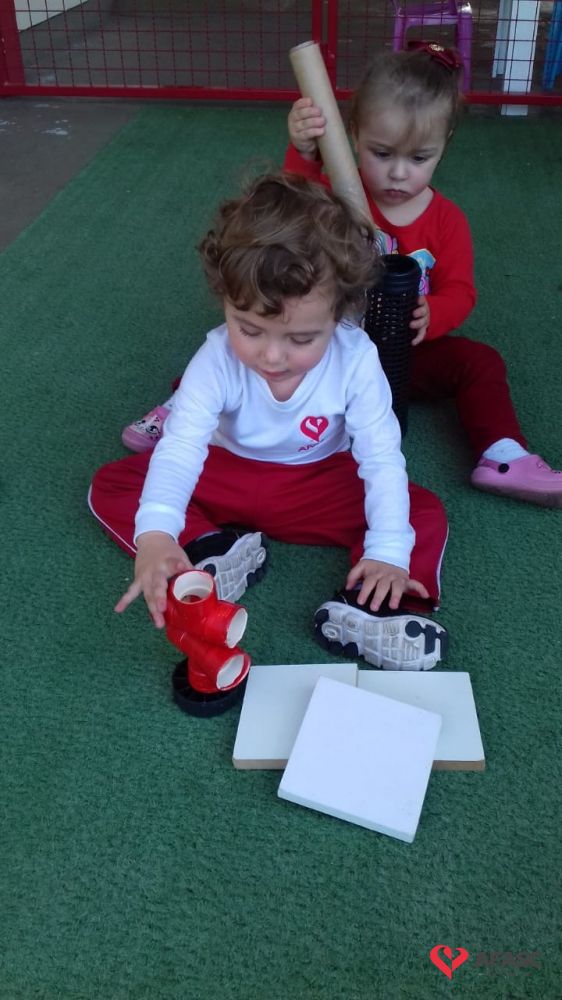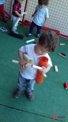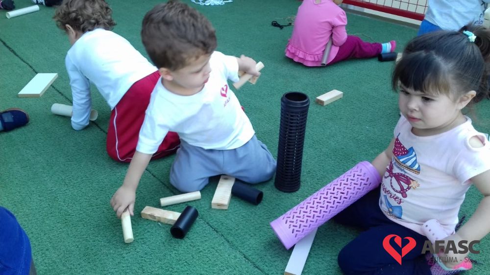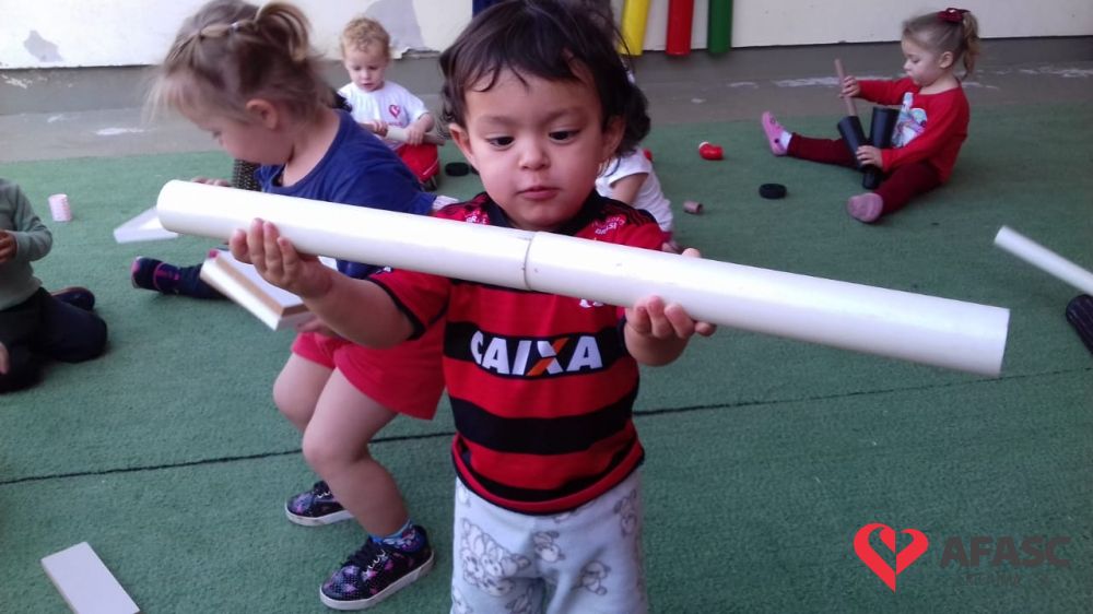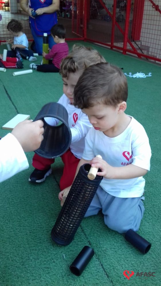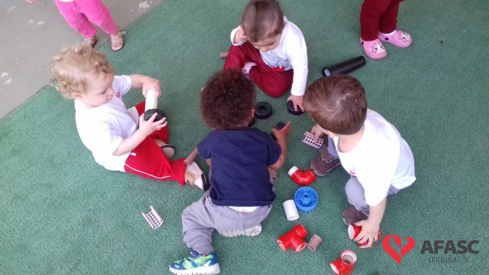 A preservação do meio ambiente é muito importante, e deve ser ensinada desde os primeiros anos de vida das crianças, afinal, os recursos naturais precisam estar disponíveis para a sobrevivência das pessoas. Pensando em dar espaço para que as crianças utilizem a criatividade e a imaginação, as professoras do Grupo II A do Centro de Educação Infantil (CEI) da Associação Feminina de Assistência Social de Criciúma (Afasc) Gerda Becker Machado, Fernanda Correa e Rita Maccarini, preparam um espaço com canos de PVC, cones, pedaços de madeira, dentre outros materiais, para que as crianças os transformassem em brinquedos e brincadeiras.