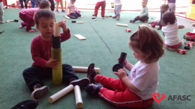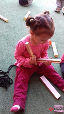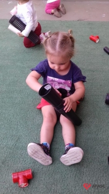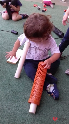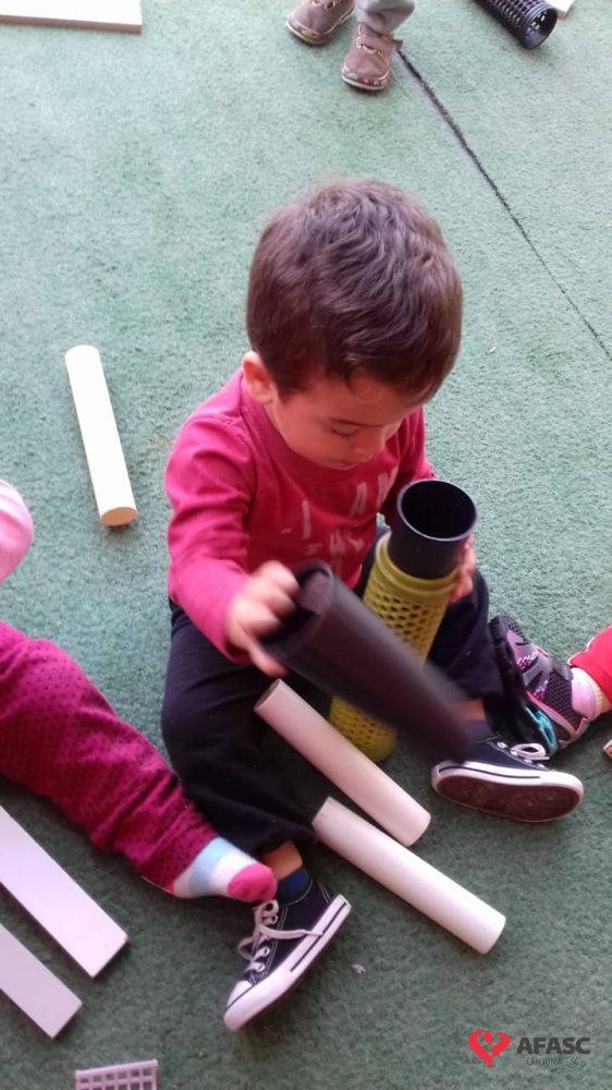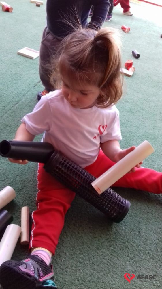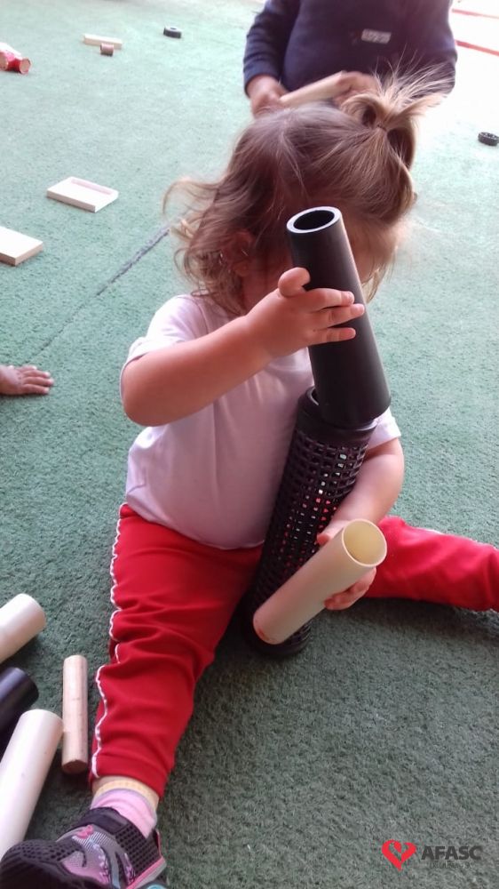 Canos de PVC, cones e pequenos recortes de madeira viram brinquedos para as crianças do Grupo II do CEI Afasc Gerda Becke Machado