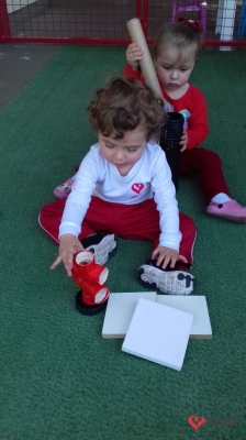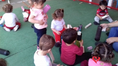Durante a realização da atividade, as educadoras encorajaram as crianças a descobrir, explorar, pensar, criar e desenvolver habilidades que dão sentido à brincadeira.