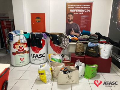 Um projeto desenvolvido pela Faculdade Censupeg de Criciúma, dentro do qual é promovida uma campanha de arrecadação de agasalhos, destinou 679 peças de roupas para a Afasc Solidária.