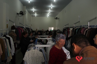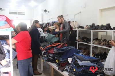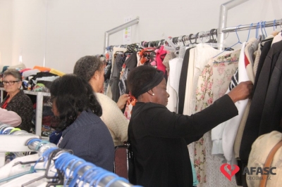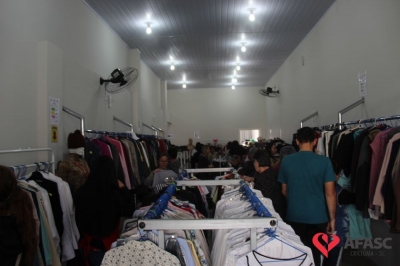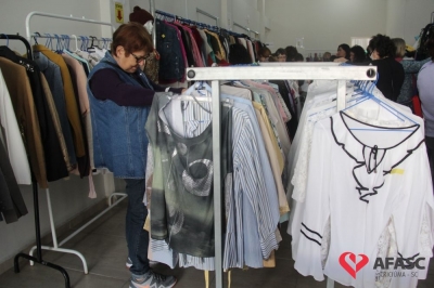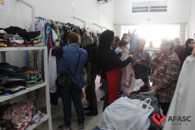 A procura por roupas, calçados e acessórios de qualidade com preços abaixo do mercado levou centenas de interessados a participar da 6ª edição do Bazar da Afasc Solidária, que iniciou nesta sexta-feira (12). O bazar está acontecendo na sede da Assistência Social da entidade, localizada no camelódromo, e possui diversas peças provenientes de doações de pessoas físicas e lojas, e segue até às 12 horas deste sábado (13). Além dos produtos já citados, está a disposição, bebê conforto, carrinhos de bebê e alguns LP’s.