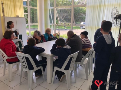 Uma parceria entre Centro de Convivência da Terceira Idade (CCTI) e Colégio Marista está possibilitando um mundo de novidades para idosos e crianças. Com o intuito de trocar experiências e vivências, crianças do colégio com idade entre oito e nove anos visitaram o CCTI, nessa quinta-feira (15), onde participaram de atividades intergeracionais e conheceram as oficinas disponibilizadas para os idosos que frequentam o espaço.