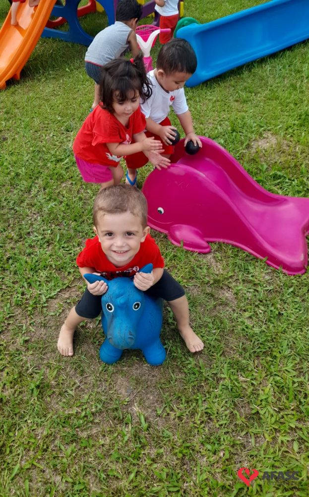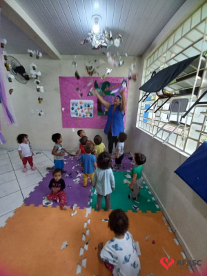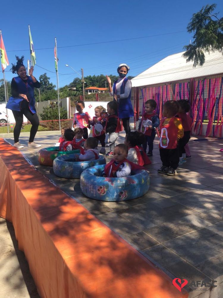 Durante os momentos de acolhimento nas creches, o planejamento foi elaborado de forma lúdica e prazerosa, levando as crianças a ampliarem seu conhecimento por meio de brincadeiras.