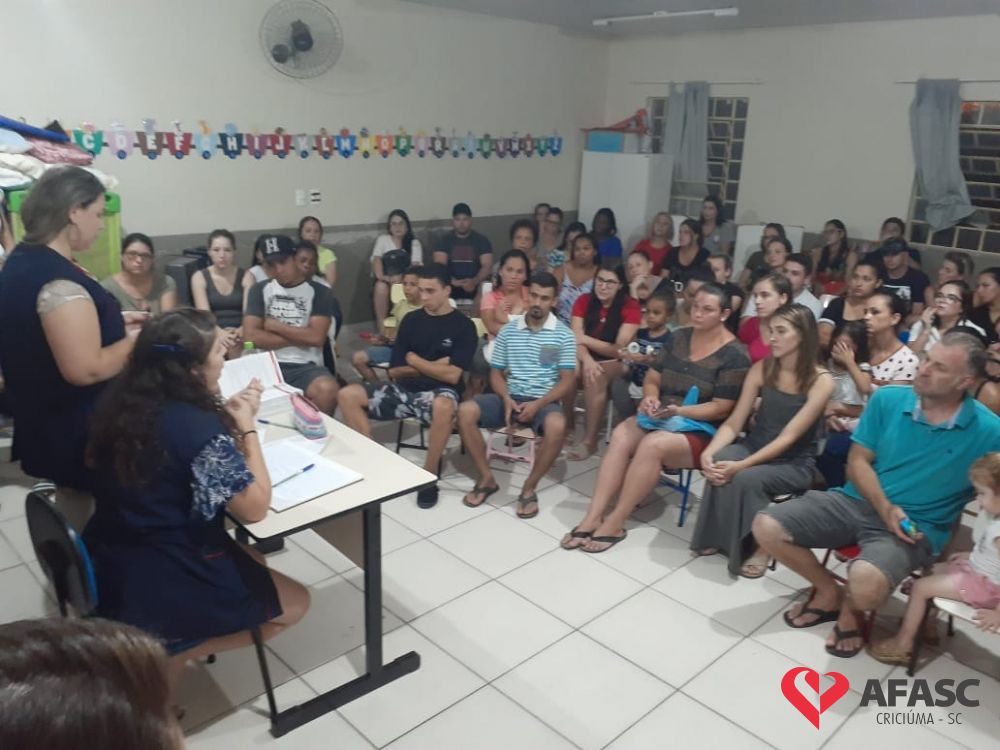 Conhecer melhor as dependências escolares, os profissionais que ali trabalham, normas e esclarecer dúvidas sobre as atividades desenvolvidas com as crianças que frequentam os Centros de Educação Infantil (CEI) da Associação Feminina de Assistência Social de Criciúma (Afasc) durante o ano letivo. Essas foram algumas das ações desenvolvidas na primeira reunião de pais realizadas nas creches da Afasc durante o mês de fevereiro.