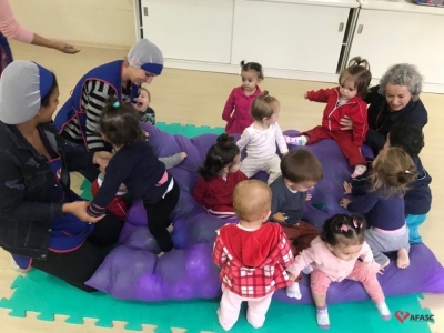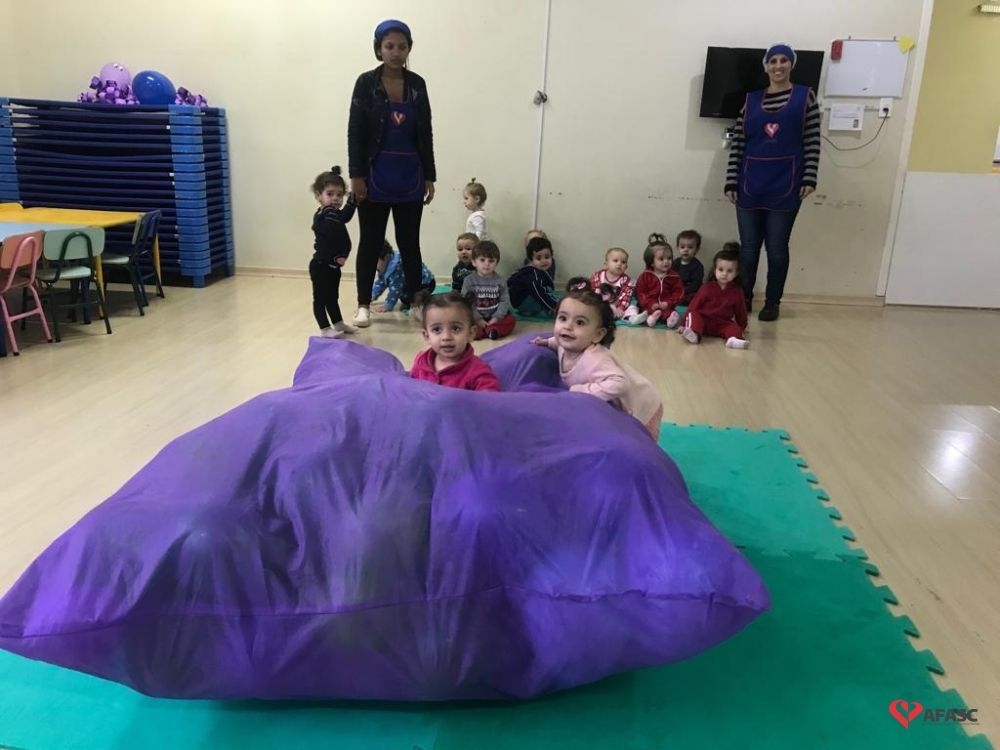 Quanto mais variadas as experiências das crianças, maiores são as possibilidades de aprendizado. As brincadeiras são ferramentas fundamentais para o desenvolvimento físico e intelectual dos pequenos. Pensando nisso, as educadoras dos Grupo II B do Centro de Educação Infantil (CEI) da Associação Feminina de Assistência Social de Criciúma (Afasc) Pequeno Polegar, Janaina Candido, Najah Ibrahim e Bianca da Silva, realizaram a atividade “Colchão de balão”. Por meio dela, os pequenos exploraram sensorialmente diversas partes do seu corpo no espaço.