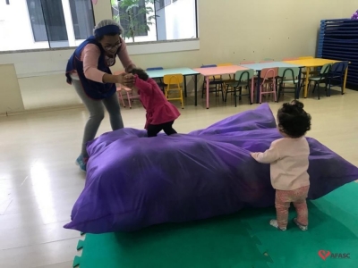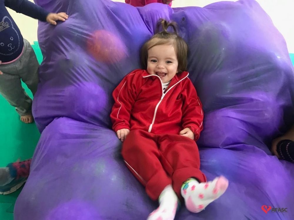 Conforme Janaina, brincar fornece estímulos necessários para que as crianças alcancem novas experiências. “Foi uma festa para as nossas crianças poder pular, deitar e andar nos balões parecia que estavam flutuando. Quando alguma das crianças não conseguia realizar a atividade sozinha, íamos ao seu lado, para que ela também participasse dessa atividade, colaborando com o processo”, relata.
