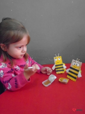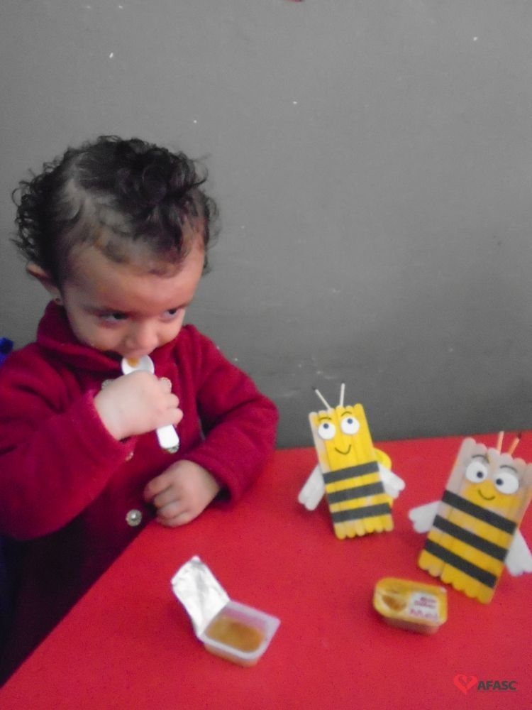 De acordo com Rosimari, para instigar as crianças sobre o assunto, a equipe utilizou diversos recursos para que as crianças conhecessem um pouco mais sobre esse bichinho que leva vida para natureza. “Explicamos que as abelhas levam o pólen das flores de um lado para o outro, facilitando assim que o mundo seja colorido com diversas flores. Exploramos cores, sabores, texturas e falamos sobre variados animais que existem na natureza. Procuramos desenvolver sentimentos de carinho e respeito para com os animais, que possuem grande importância no cotidiano das crianças pela presença de histórias infantis, brinquedos e desenhos”, comenta.