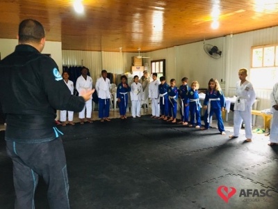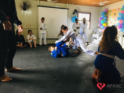 Os pais das crianças e adolescentes que estão frequentando a colônia de férias do Serviço de Convivência e Fortalecimento de Vínculos de zero a 17 anos da Associação Feminina de Assistência Social de Criciúma (Afasc) podem trabalhar tranquilos. Os participantes do serviço, estão realizando atividades esportivas e recreativas no Centro de Convivência Vida Nova, que proporcionam momentos muito especiais durante este período. Além das aulas de jiu jitsu, crianças e adolescentes participam de diversas oficinas que estão trazendo muita diversão e alegria.