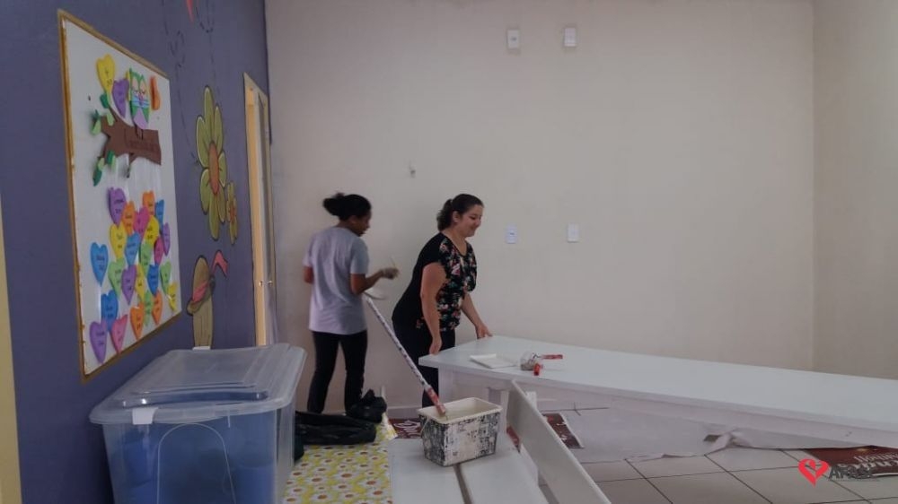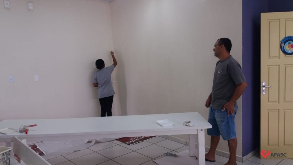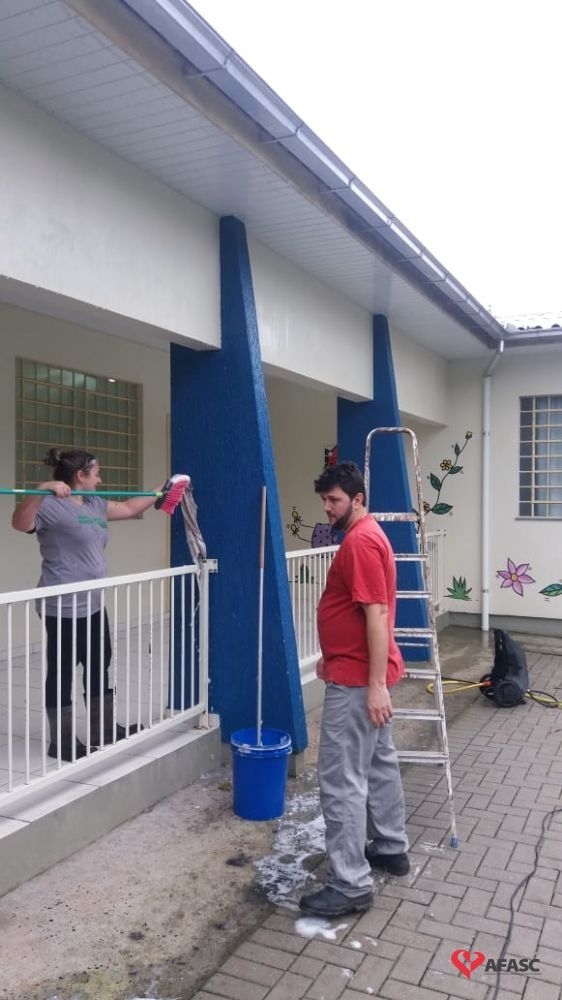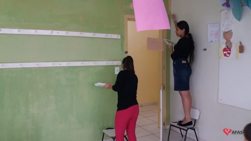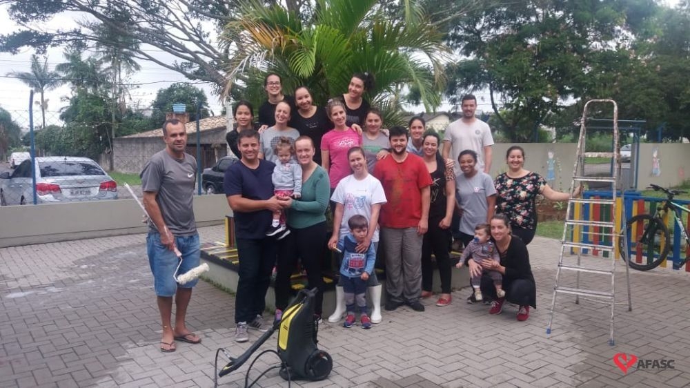 Para ajudar na preservação da estrutura que abriga o Centro de Educação Infantil (CEI) da Associação Feminina de Assistência Social de Criciúma (Afasc) Zulma Naspolini Manique Barreto, pais, professores e equipe de apoio estiveram reunidos na unidade escolar realizando limpeza e serviços de manutenção dos espaços. A equipe realizou pinturas em algumas paredes, troca de lâmpadas, conserto de tomadas e lavou salas, refeitório e outros ambientes utilizados diariamente pelas crianças.