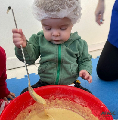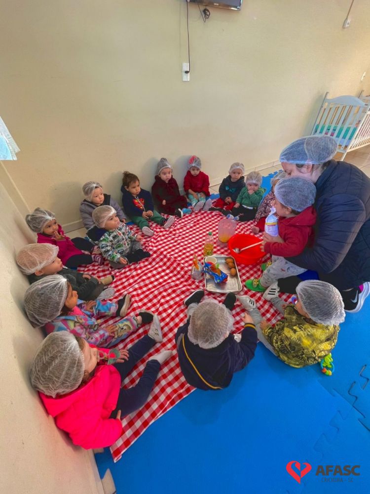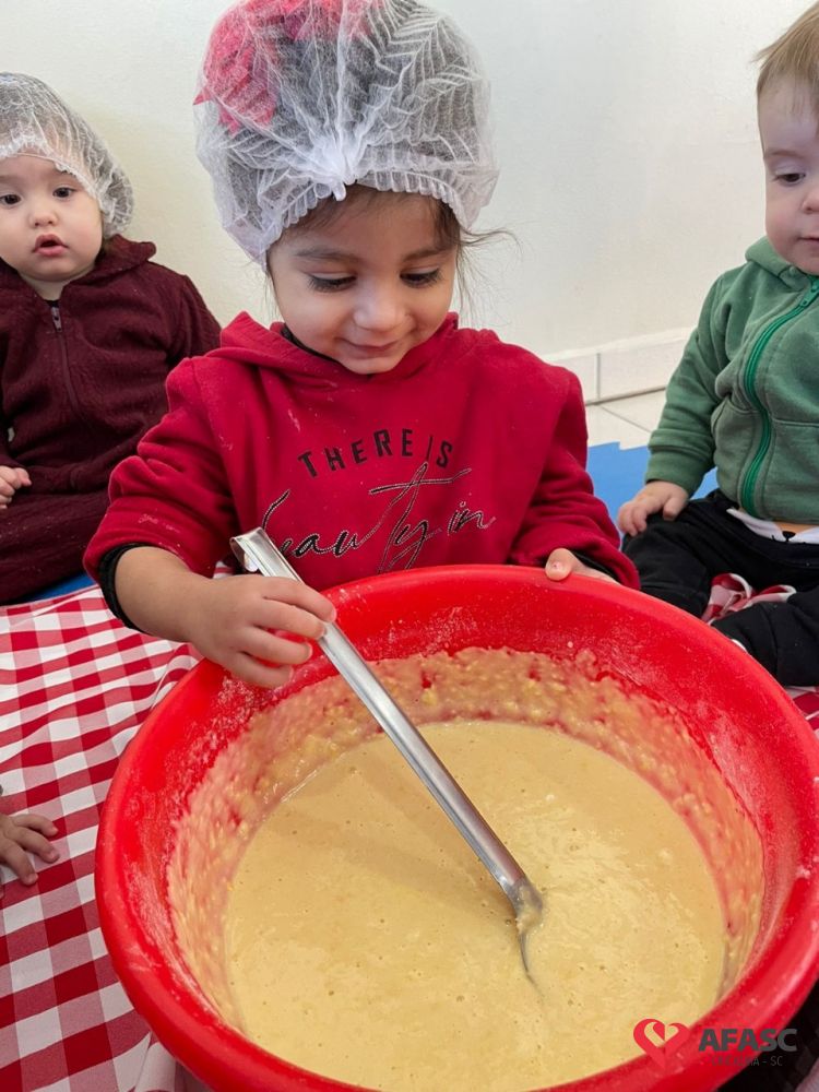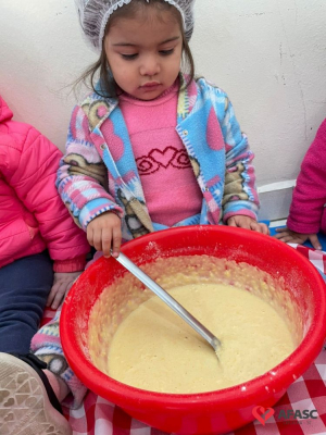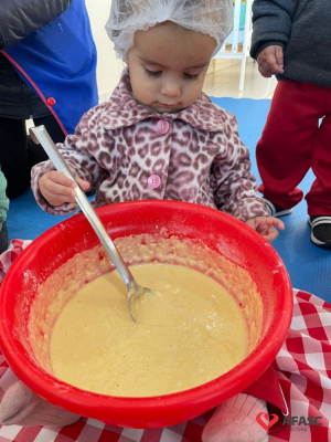 Uma das turminhas trabalhou com a história da Galinha Ruiva. Com essa literatura o ensinamento foi sobre a importância de ajudar aos amigos e a família quando eles te pedem auxílio. “A história fala da tarefa difícil de produzir um bolo de milho, para alimentar os animais da fazendo, que estava sob a responsabilidade da galinha”, contou a diretora do CEI, Debora Fernandes revelando que a turminha foi envolvida, após a contação de história, na produção de um delicioso bolo de milho. “Todos os ingredientes foram apresentados às crianças e elas ajudaram a mexer a massa do bolo. Momentos de muita diversão e fofurices”, concluiu.