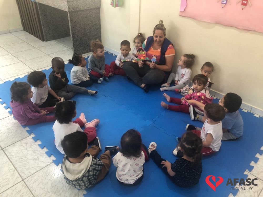 A equipe do CEI Afasc Maria de Assis Góes, bairro São Luís, vem trabalhando vários projetos; entre ele o de “Contação de História”. Assim, as turminhas dos grupos 2A e 2B ouviram a atentos a história do “João e o Pé de Feijão, quando puderam conhecer mais sobre a vaca Mimosa.