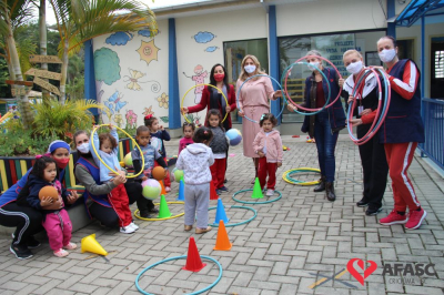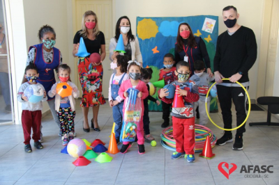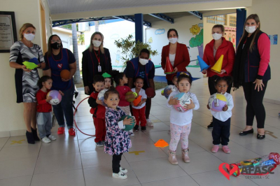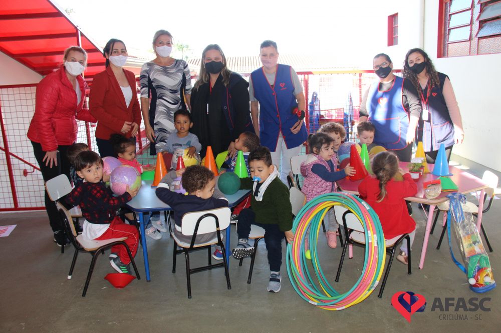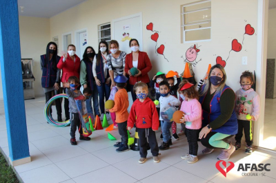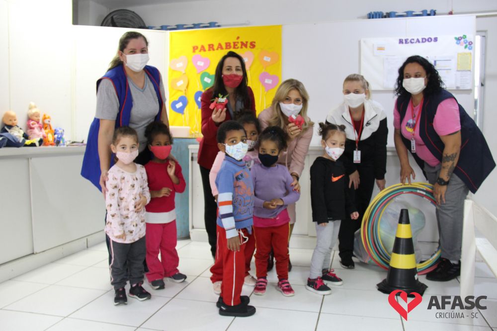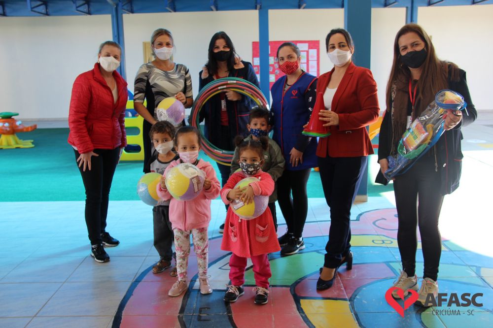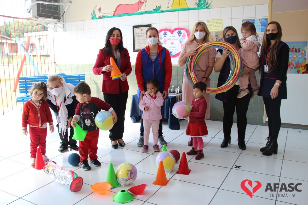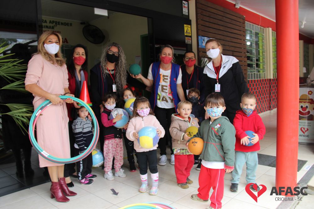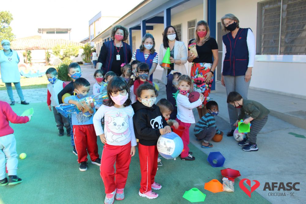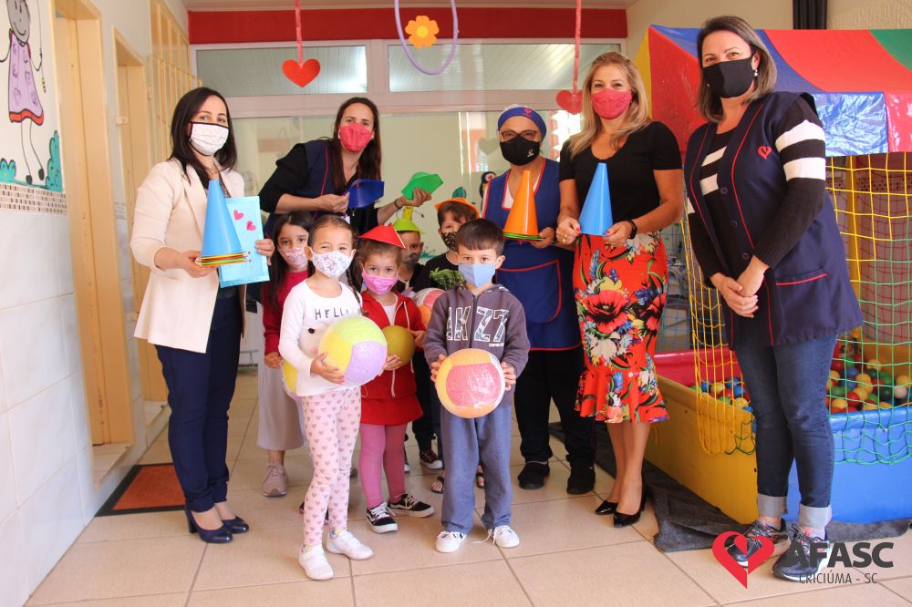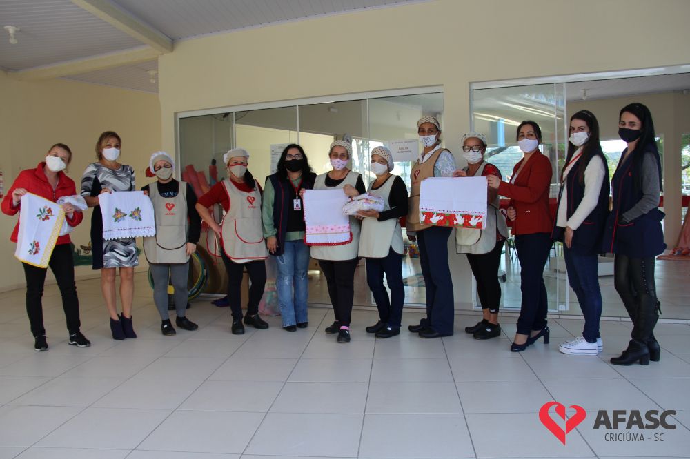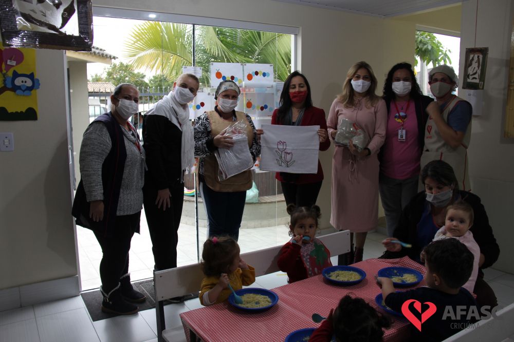 Na tarde desta quinta-feira (20), a coordenadora do Departamento de Educação Infantil (DEI), Andreza Dagostim, acompanhada da presidente de honra, Adriana Goulart Salvaro e da presidente do Conselho Administrativo da Afasc, Robinalva Ferreira, realizaram as últimas entregas de toalhas produzidas pelas participantes dos Clubes de Mães, os novos uniformes do apoio, confeccionados pelas monitoras do departamento de Clubes de Mães no ateliê da instituição e dos materiais de Educação Física. Cada profissional de limpeza irá receber dois kits contendo avental, máscara e toca.