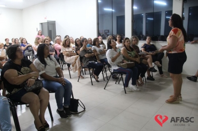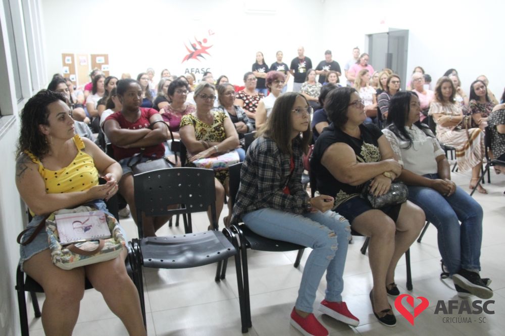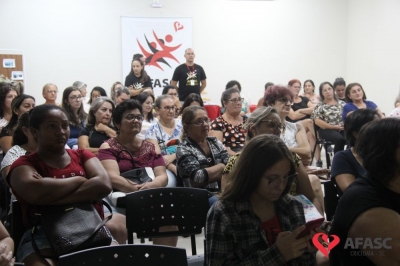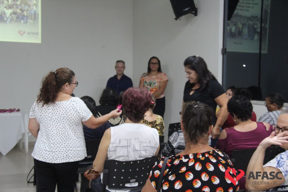 Na noite dessa quinta-feira (05), a coordenação do Programa da Associação Feminina de Assistência Social de Criciúma (Afasc) Ritmo e Saúde, reuniu representantes dos bairros onde é realizado o projeto. Na oportunidade, as participantes receberam orientações sobre o desenvolvimento das atividades físicas, da competição de perda de peso “Emagrecendo com Ritmo e Saúde”, e conversaram sobre o calendário de eventos do projeto.