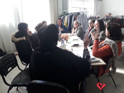 A coordenação do Serviço de Convivência e Fortalecimento de Vínculos (SCFV) de zero a 17 anos da Associação Feminina de Assistência Social de Criciúma (Afasc), reuniu nessa quinta-feira (15), na sede da Afasc Solidária as orientadoras sociais dos sete núcleos do serviço. A equipe tratou assuntos como indicadores, avaliação do primeiro semestre, avaliação da equipe de trabalho, planejamento de atividades, ações e eventos, além de questões administrativas e documentação do departamento, sendo esses temas pertinentes ao bom andamento do serviço de convivência.