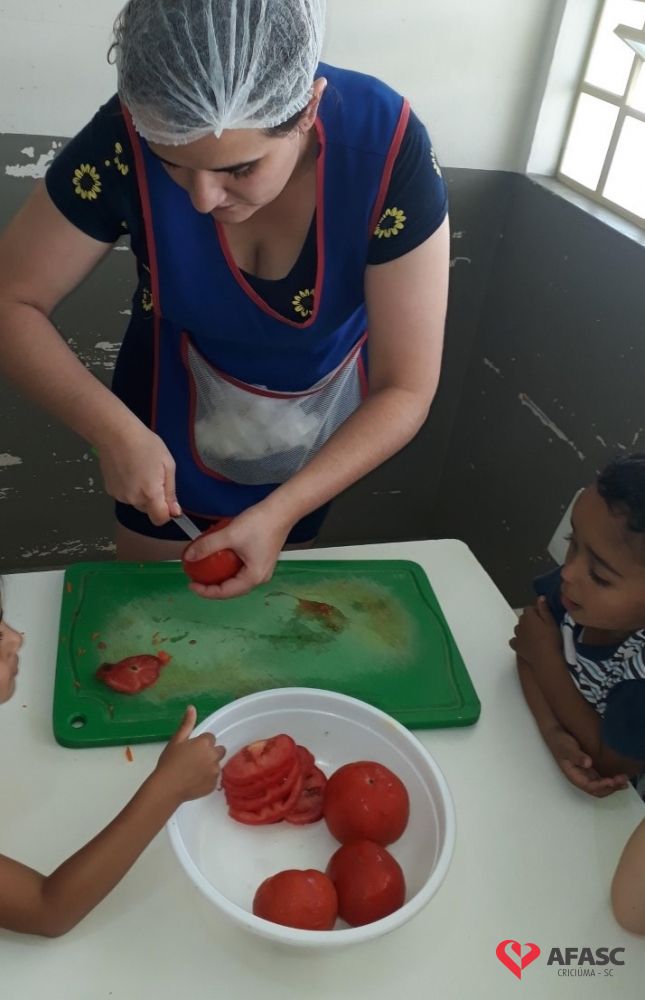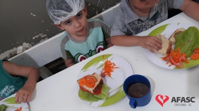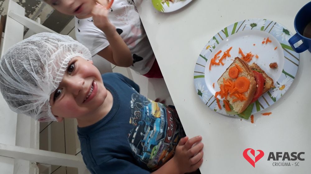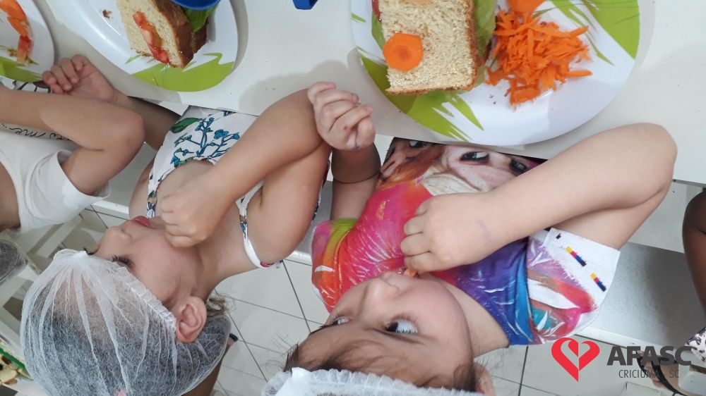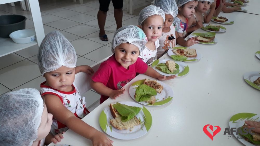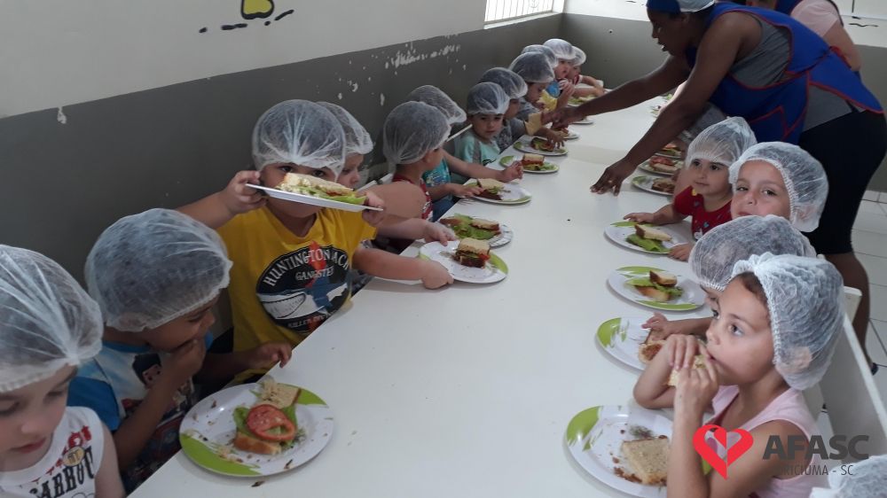 A hora do lanche, é um momento muito importante para a socialização das crianças, e também para a ampliação dos conhecimentos sobre o mundo que as cercam. Com o intuito de proporcionar momentos de muita aprendizagem, as professoras dos Grupos III A e IV A do Centro de Educação Infantil (CEI) da Associação Feminina de Assistência Social de Criciúma (Afasc) Pingo de Gente, Tamiris Locks e Aline realizaram a atividade “Sanduíche Natural.