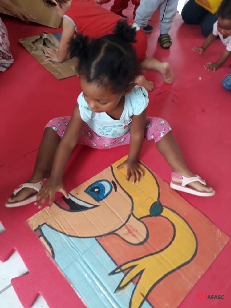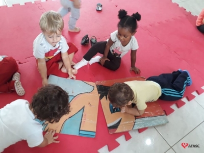 Segundo a professora, desta forma, além das crianças conseguirem manusear o material, elas ainda desenvolvem sua percepção visual e tátil, e também diferentes habilidades do pensamento como observar e comparar. “Como o quebra cabeça é montado em grupo é um ótimo instrumento de socialização, ensinando a criança a trabalhar em equipe e cooperar com o próximo. Percebemos um grande interesse por parte das crianças, despertando nos pequenos atenção e coordenação motora. Foi uma atividade que encheu o dia deles de alegria e encanto”, relata Gabriela.