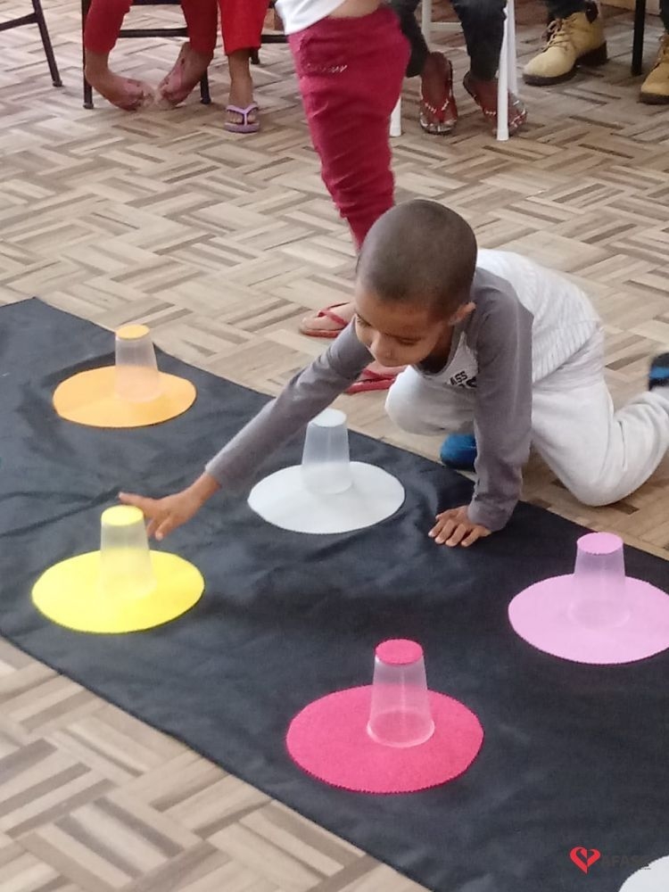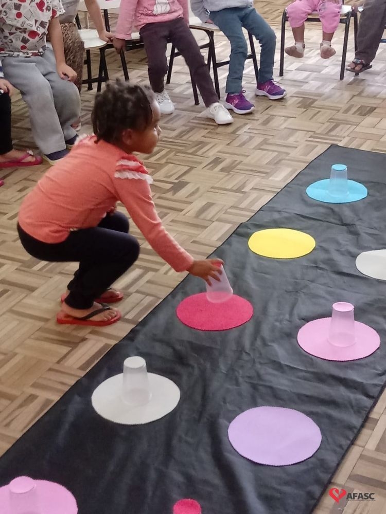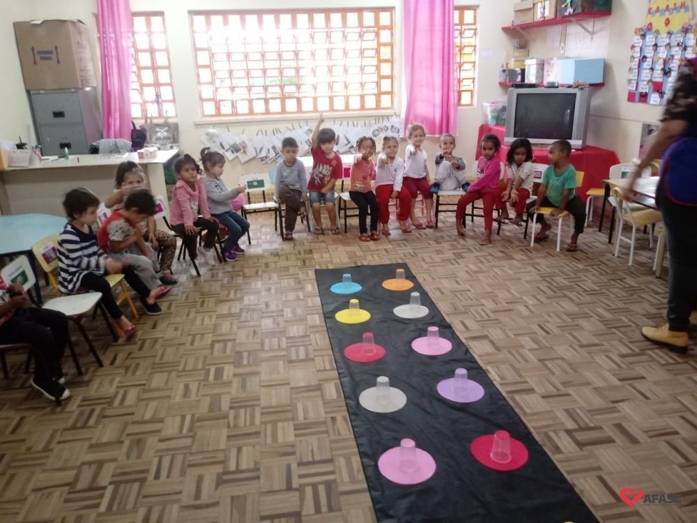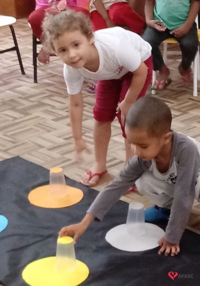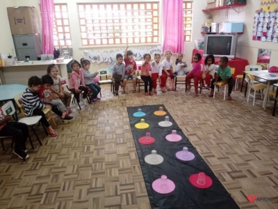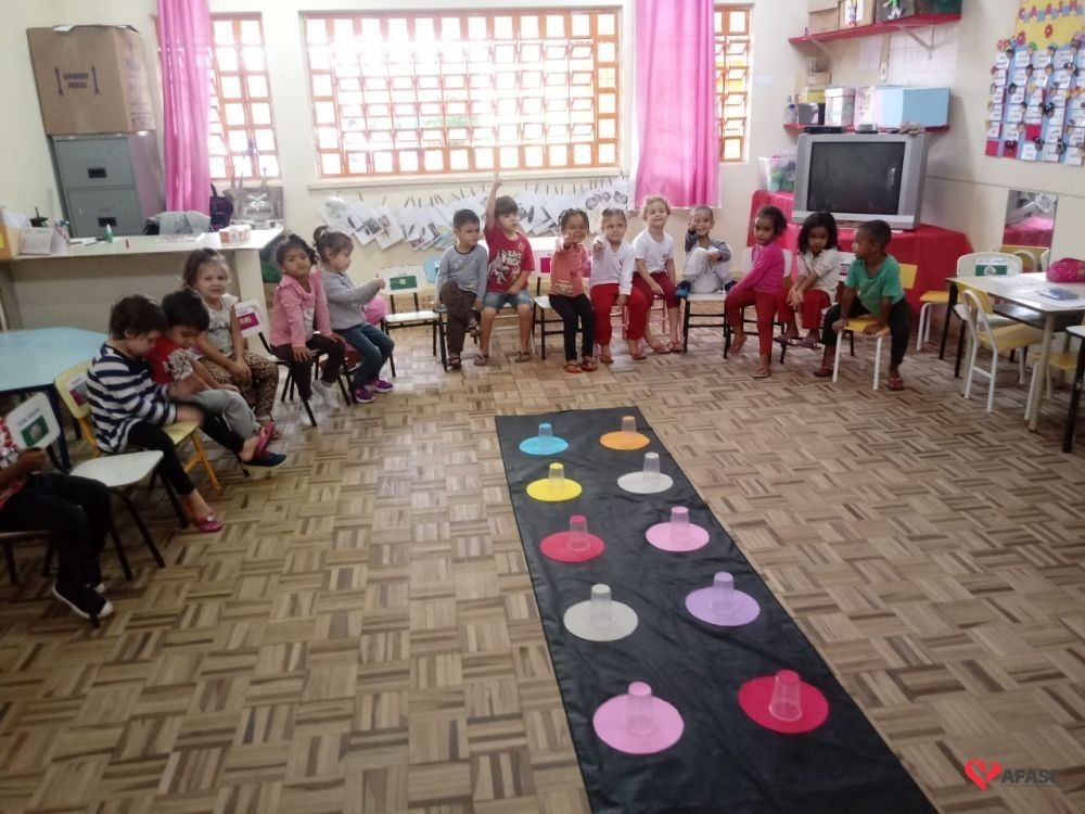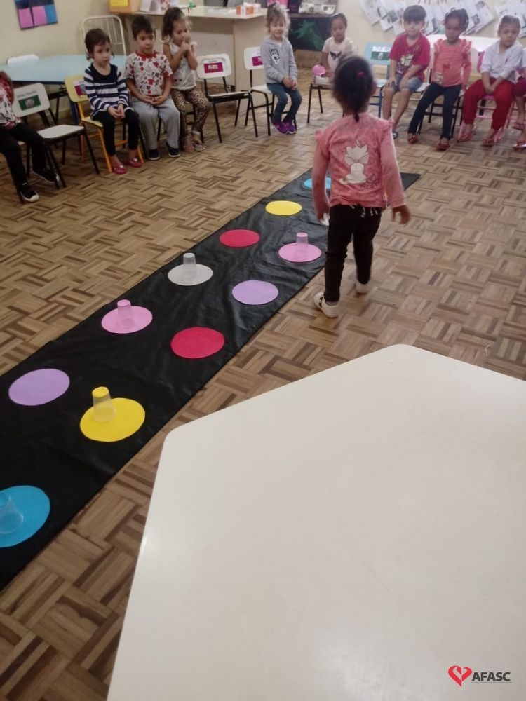 Além de identificar e relacionar as cores do tapete com as do copo descartável, as crianças tiveram despertado sua curiosidade com uma ferramenta pedagógica que possibilitou momentos de muita alegria e aprendizado significativo.
