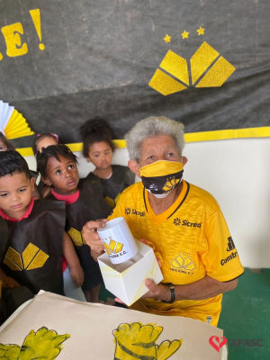 O projeto macro “Criciúma e suas riquezas”, trouxe grandes possibilidades e descobertas sobre o município para as crianças do CEI Afasc Carlos Piazza. O encerramento do planejamento, contou com a participação da torcedora símbolo do Criciúma Esporte Clube, Ivone Camilo Fernandes, 78 anos, que contou um pouco sobre sua história e paixão pelo time carvoeiro, que iniciou a mais de 40 anos.