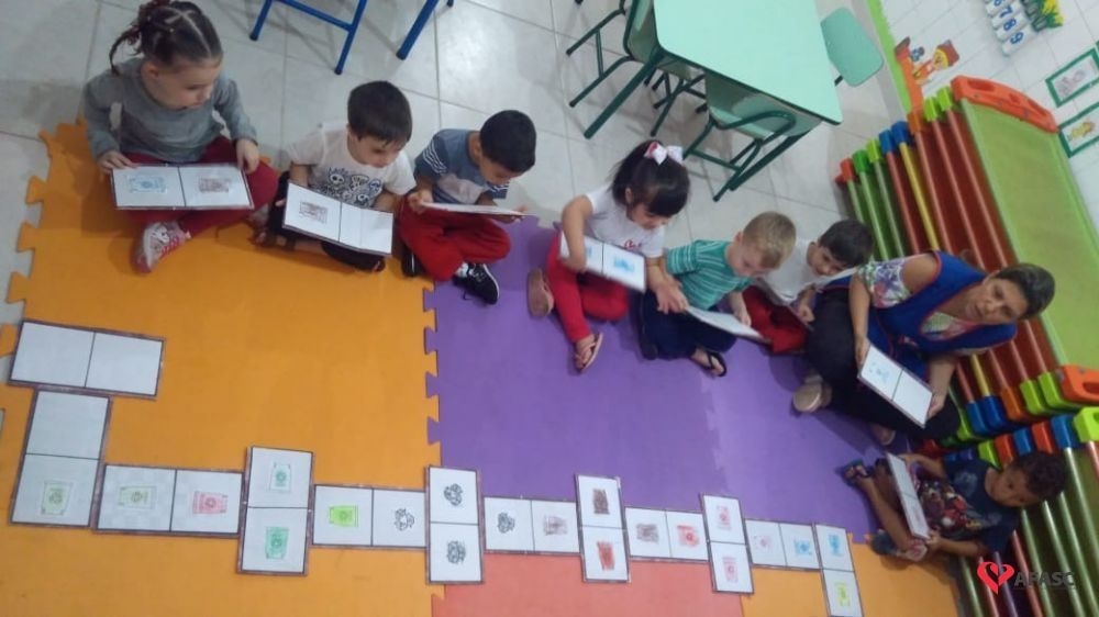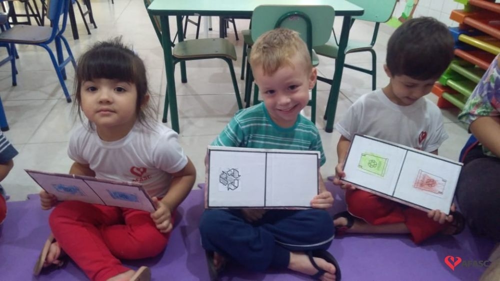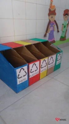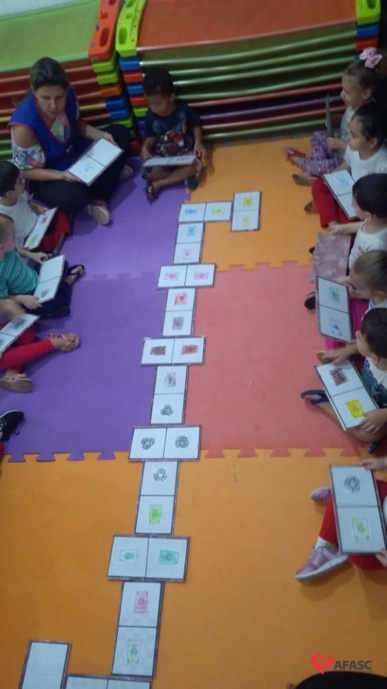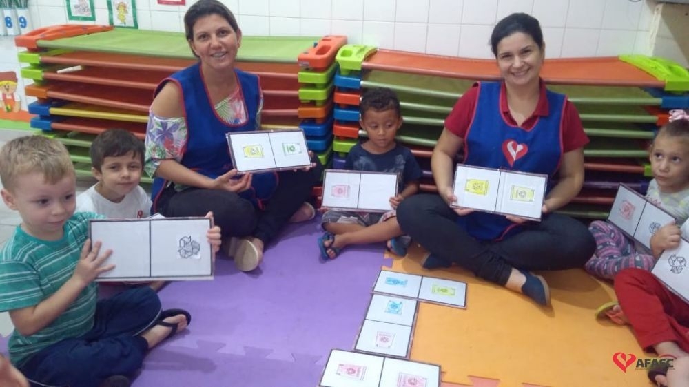 Conforme Amanda, após conversas com as crianças sobre reciclagem, a turma buscou alternativas para mostrar o que entendeu sobre o tema. “Observamos imagens diversas e também confeccionamos lixeiras seletivas para a sala. Buscando utilizar a reciclagem de forma mais significativa para nossos alunos confeccionamos o dominó gigante de papelão, desenvolvendo o raciocínio lógico, ao mesmo tempo em que mostramos que a reciclagem deve fazer parte do nosso cotidiano”, comenta.