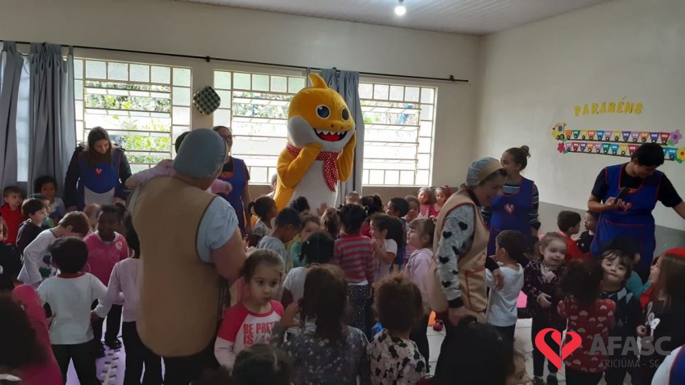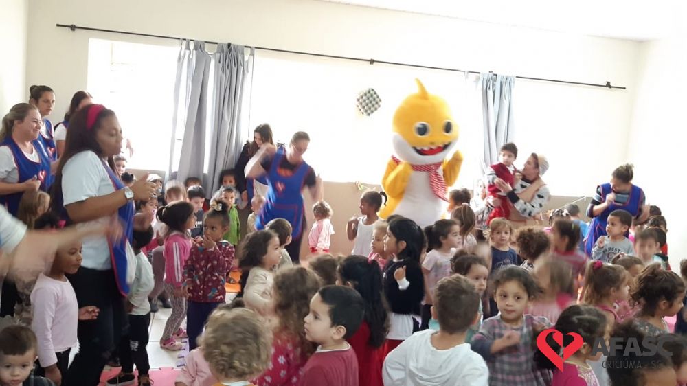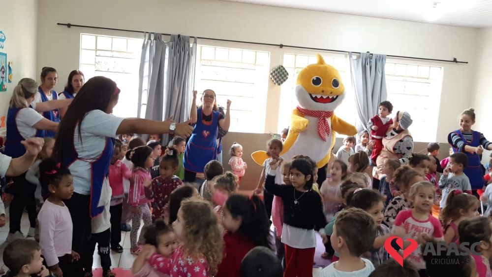 O tubarão bebê “Baby Shark” fez a alegria das crianças do Centro de Educação Infantil (CEI) da Associação Feminina de Assistência Social de Criciúma (Afasc) Nova Esperança ao realizar uma visita aos pequenos. O fenômeno infantil que faz a alegria das crianças no Youtube, trouxe além de música, muitas atividades super divertidas e dinâmicas para os alunos.