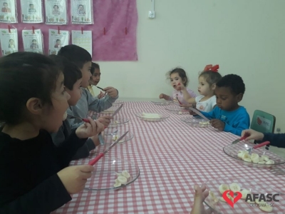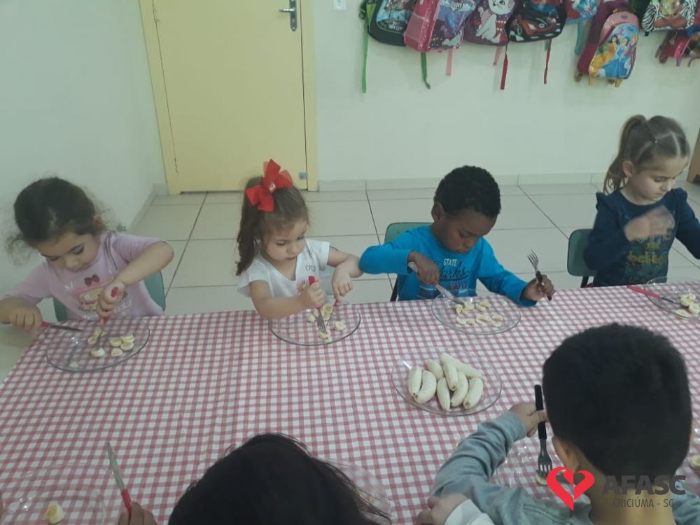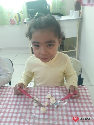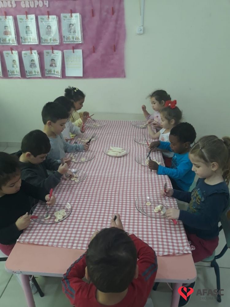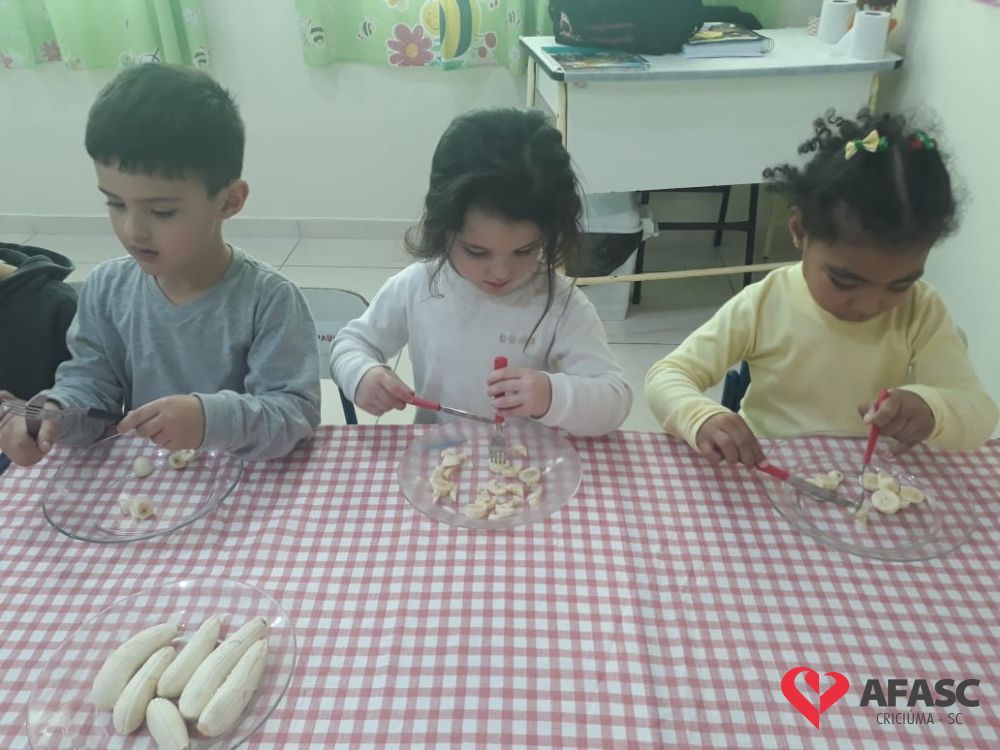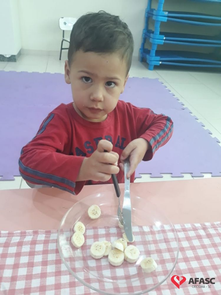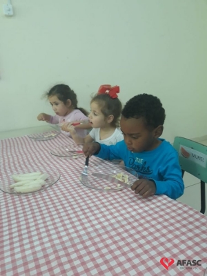 Saber comportar-se a mesa, é uma das tarefas que devem ser ensinada em casa, com o apoio de toda a família. A partir daí a escola entra como corresponsável neste processo, preenchendo os requisitos necessários para complementar o que já foi ensinado. Pensando desta forma, a professora Rosangela Sant’Anna, que atua com o Grupo IV B do Centro de Educação Infantil (CEI) da Associação Feminina de Assistência Social de Criciúma (Afasc) Professor Jairo Luiz Thomazi, trouxe mais um desafio para os pequenos. As crianças estão sendo incentivadas a utilizar garfo e faca durante a sua alimentação.