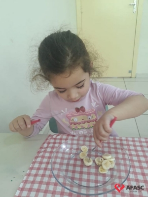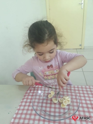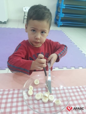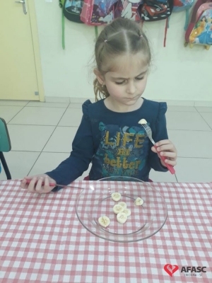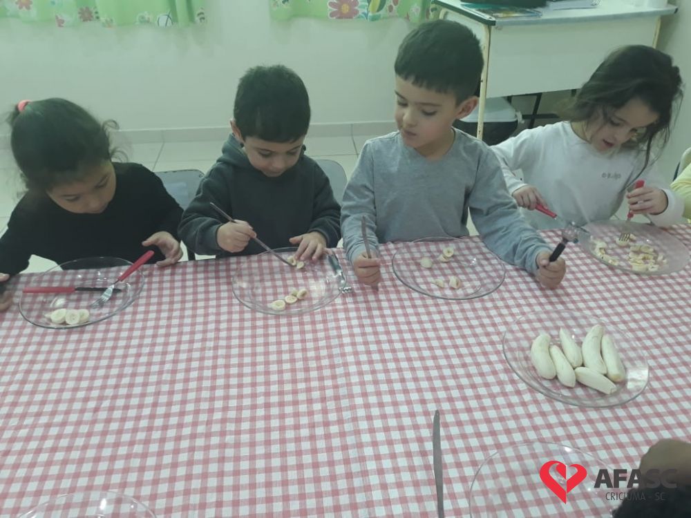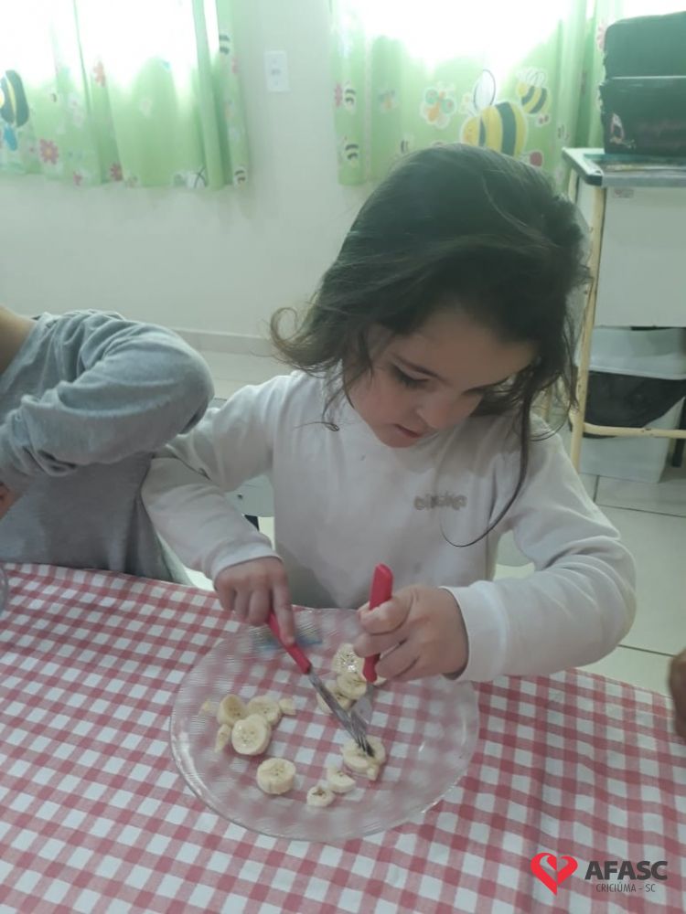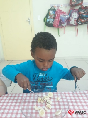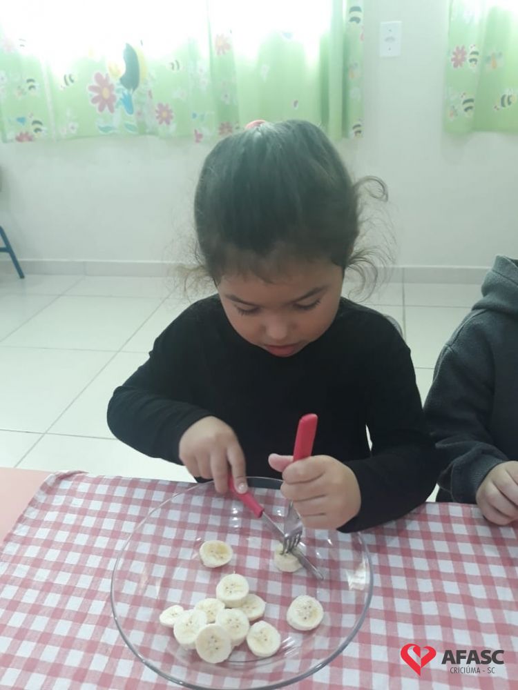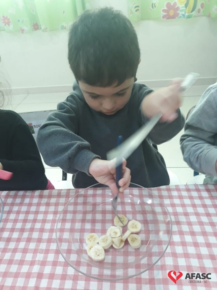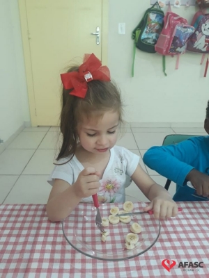 De acordo com Rosangela, existem normas básicas que toda criança deve conhecer, e esta atividade além de ser um desafio, apresentou o potencial cada dia mais surpreendente, de cada um dos alunos. “Tenho como desfio conseguir que as crianças comam por si só com garfo e faca, sendo essa uma tarefa demorada e complexa. Mas utilizamos o lúdico, desta forma eles se divertiram ao mesmo tempo em que aprenderam. Tivemos muito cuidado com o manejo da faca, mesmo sendo sem ponta. Iniciamos o processo em sala de aula como uma atividade divertida na hora da fruta, e assim o interesse continua, até o uso ser contínuo no refeitório”, comenta.