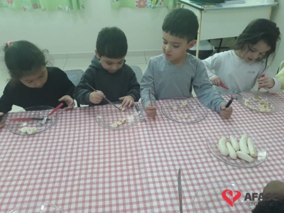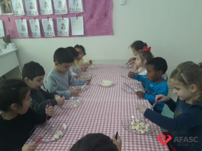 A ação faz parte do projeto “Pequenos Aprendizes e Grandes Ensinadores”, onde as crianças têm aprendido diariamente como ter uma alimentação saudável. Inicialmente, a educadora apresentou a novidade como se fosse um jogo, instigando assim a curiosidade dos pequenos.