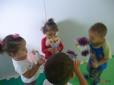 Crianças do CEI Afasc San Diego constroem palhaço com garrafa pet e bolinhas de isopor