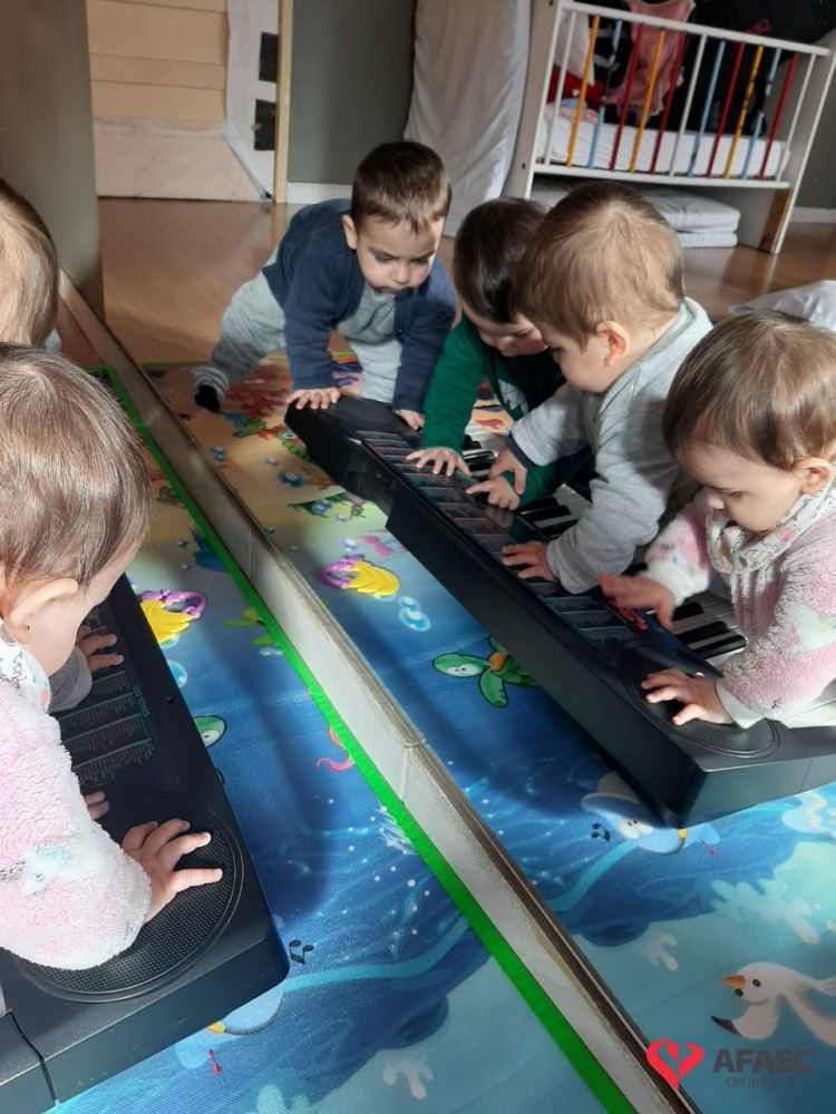 O ambiente sonoro, assim como a musicalização em diferentes e variadas situações do cotidiano, faz com que os bebês tenham momentos significativos por meio da música. Com o intuito de explorar movimentos e sensações do corpo criando momentos de alegria que possibilitem um melhor desenvolvimento das crianças, as professoras de Grupo I do CEI Afasc Carmela Benedet Casagrande, Ana Paula Macedo, Cristiane Rodrigues e Julia Martinelli estão desenvolvendo o projeto “Que som é esse?”.
