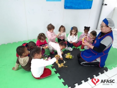 Com o intuito de ensinar as crianças comer bem e de forma saudável, as professoras Ieda de Souza e Kelly Sieglits, que atuam no Grupo II do Centro de Educação Infantil (CEI) da Associação Feminina de Assistência Social de Criciúma (Afasc) San Diego, realizaram a atividade “Pinte o que você mais gosta de comer”. O exercício trouxe para os pequenos a autonomia, já que eles definiram o que mais gostam e a possibilidade de experimentar diferentes alimentos.