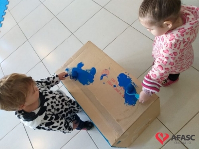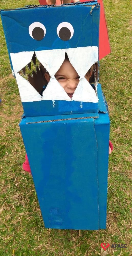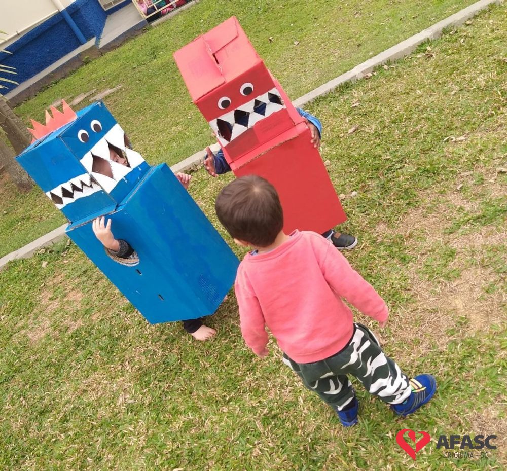 As crianças do Grupo II do Centro de Educação Infantil (CEI) da Associação Feminina de Assistência Social de Criciúma (Afasc) Santo Antonio conheceram mais sobre o mundo dos dinossauros. A escolha da atividade se deu por conta da descoberta e o interesse das crianças pelo pijama do animal pré-histórico que um coleguinha de classe utilizou durante a aula. A atividade que foi desenvolvida pelas professoras Caroline Apolinário e Mônica Nicoski, aconteceu em três momentos: a contação da história “Incríveis Dinos-Tiranossauro Rex”, confecção do Dino e da Didida, com caixas de papelão, e brincadeiras com os mais novos mascotes da turma.
