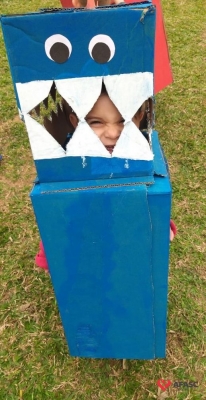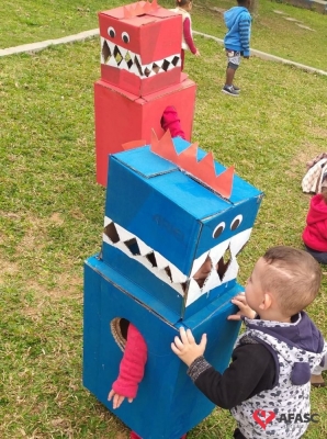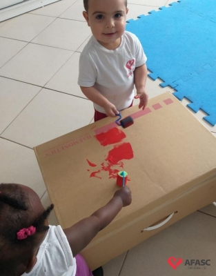 Crianças do Grupo II do CEI Afasc Santo Antonio criam dinossauros com caixa de papelão
