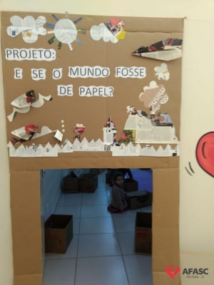 Uma porta de papelão 3 D, ambiente cheio de luzes, cores e muito papel dos mais diferentes formatos e tamanhos. Assim foi a abertura do projeto trimestral “E se o mundo fosse de papel?”, do Grupo III B do Centro de Educação Infantil Professor Jairo Luiz Thomazi. As atividades estão sendo desenvolvidas pelas educadoras: Rosana Fogaça, Carolaine Felizardo e Cintia Creaste, e fazem parte do Projeto Macro “Vamos Salvar o planeta “Ainda dá tempo”.